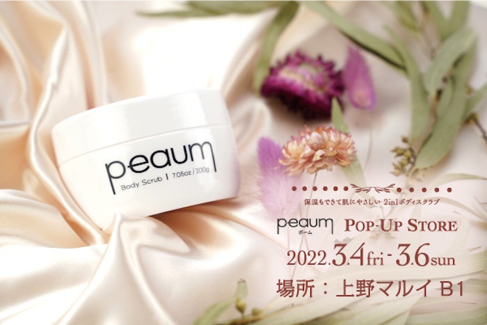 【先行予約販売】ボディーソープとしても使える2in1スクラブ「peaum(ポーム)」のPOPUPストアが上野マルイで3/4(金)~3/6(日)期間限定初出店