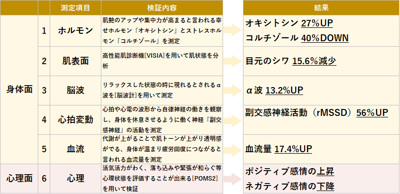 検証の結果、開発したテクニックを受けることで下記のようなさまざまな変化が期待できることを立証しました。