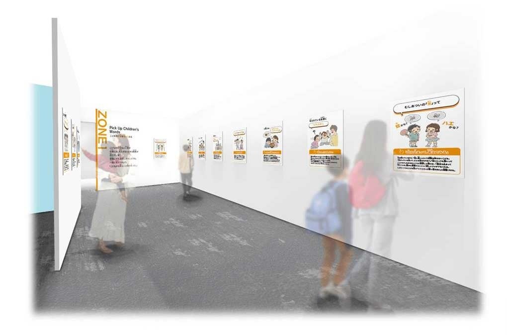 『こども▢ことば展』は、親子での学習機会を提供し、地域の魅力価値向上に寄与することを目的としています。展示は主に3つのゾーンで構成されており、今回の展示ではゾーン1の「こどものことばを拾ってみる」パネルゾーンを展開します。