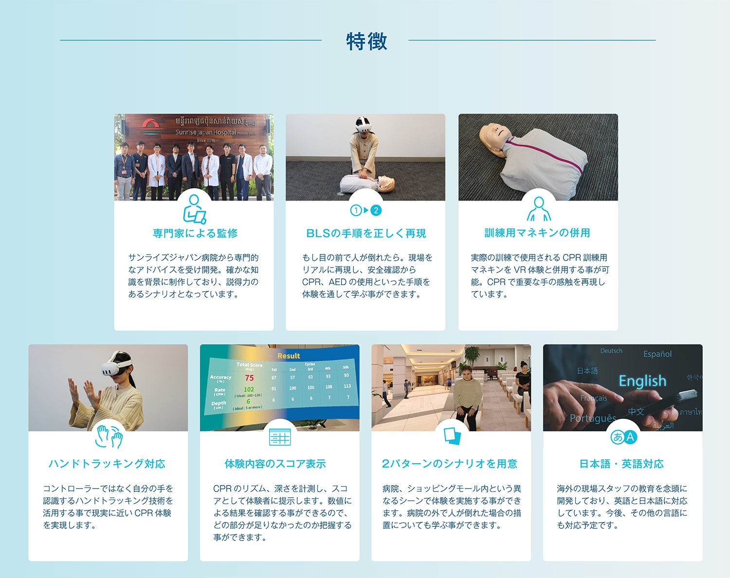 積木製作は5年ほど前からカンボジアに拠点を持ち、海外展開を模索してきた経緯があります。そんな中、日系企業が出資し、新しい技術に対しても率先して取り組んでいるサンライズジャパン病院と意見交換の機会を持つ事ができました。XR技術をどのように医療に活かしいてくのか検討の結果、広く汎用的に活用する事ができるBLS(Basic Life Support)を題材としたVRトレーニングを開発するに至りました。