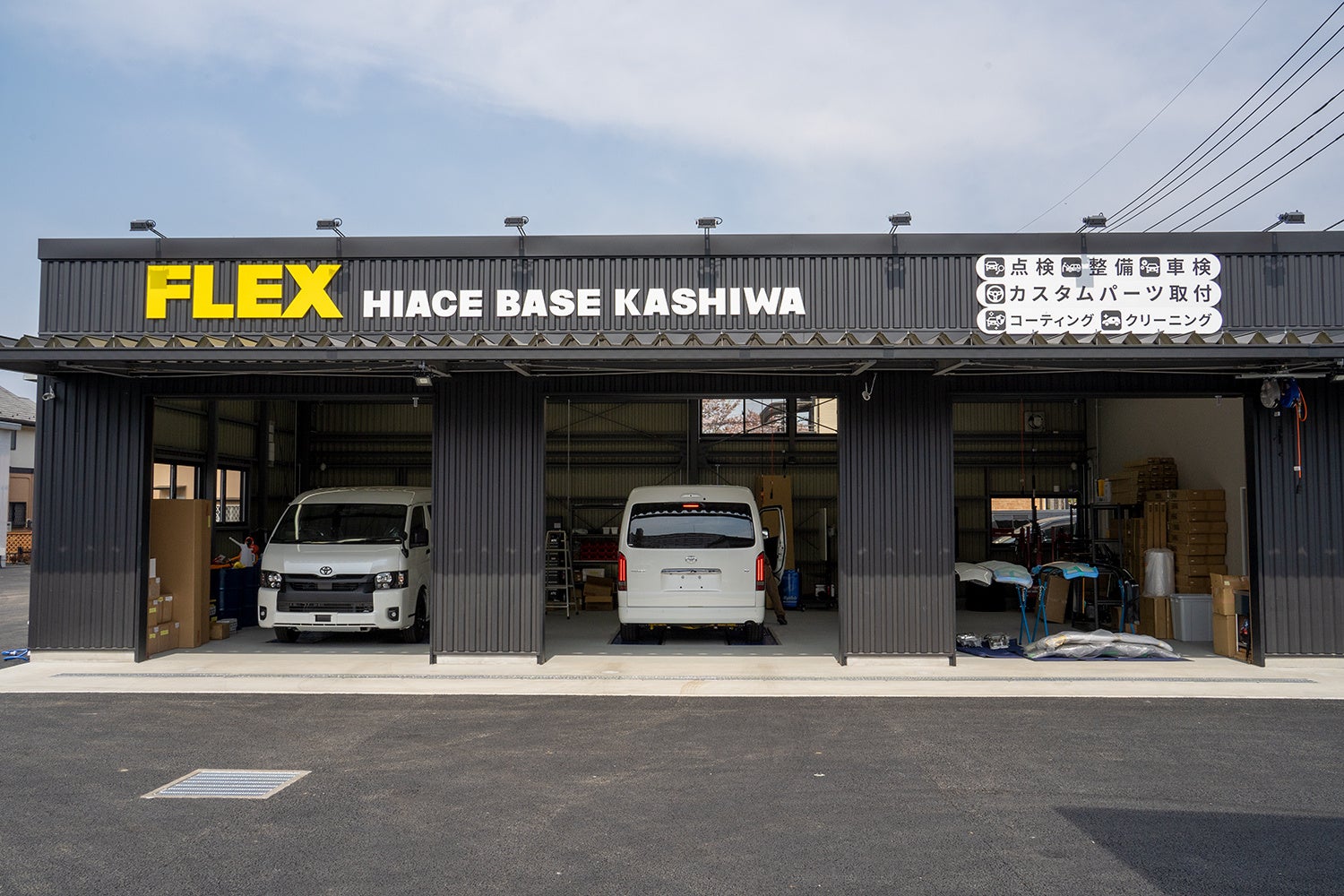 2023年4月8日(土)、ハイエース専門店のフレックスが、ハイエースカスタム基地3店舗目「FLEX HIACE BASE KASHIWA(ハイエースベース柏)」をオープン!