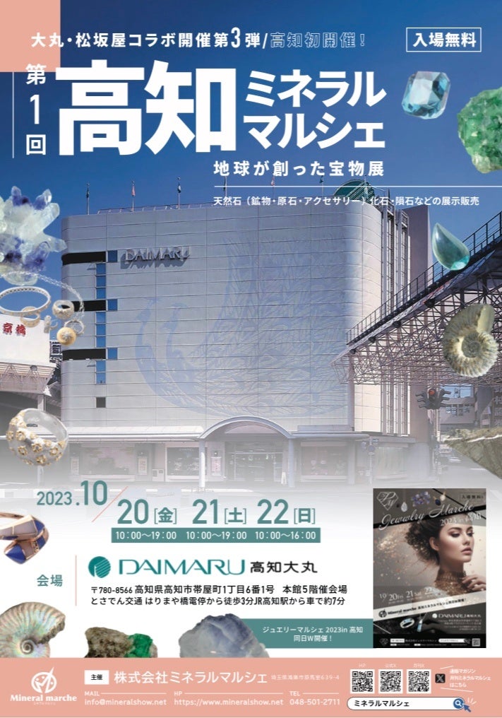 こちらの「第1回 高知ミネラルマルシェ」への出展で、東洋ルースの展示販売会は、高知県初上陸(高知県での展示販売会 初開催)となります。