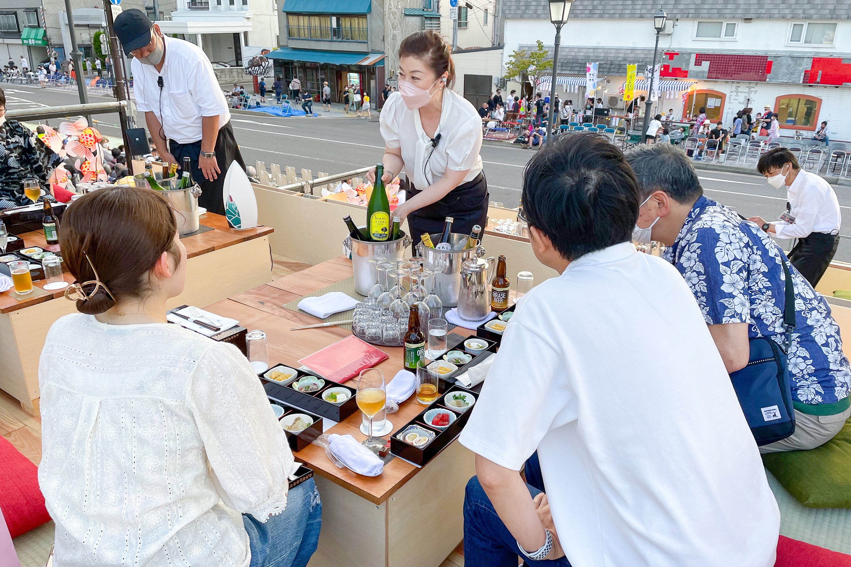 VIPシートのお席を担当する専属スタッフが、お食事やお飲み物の提供をはじめ、快適なねぶた観覧体験のためのお手伝いをさせていただきます。観覧に際し、事前のご質問、ご相談等ございましたらお気軽に特設サイトの最下部に記載の問い合わせ窓口より、お気軽にお問い合わせください。専門のスタッフよりご返信をさせていただきます。