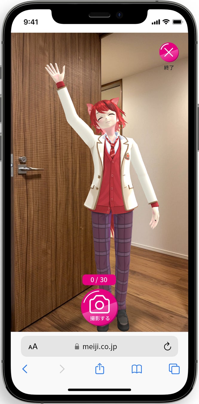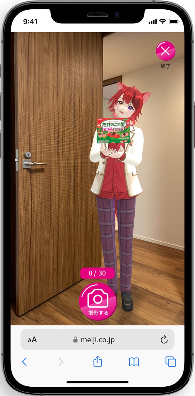 まるで、バーチャル姿のメンバーが実際に自分の家に来たかのように、メッセージと共に、明治「いちごお菓子」を届けてくれます。