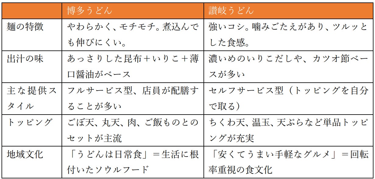 このような違いが生まれている理由として、その背景にあるうどん文化・食文化にも着目すべきです。