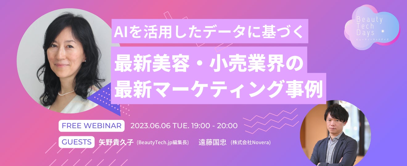 「AIを活用したデータに基づく最新美容・小売業界のマーケティング事例」というテーマでBeautyTech.jp編集長の矢野 貴久子氏、Novera代表の遠藤 国忠によるパネルディスカッションを行います。