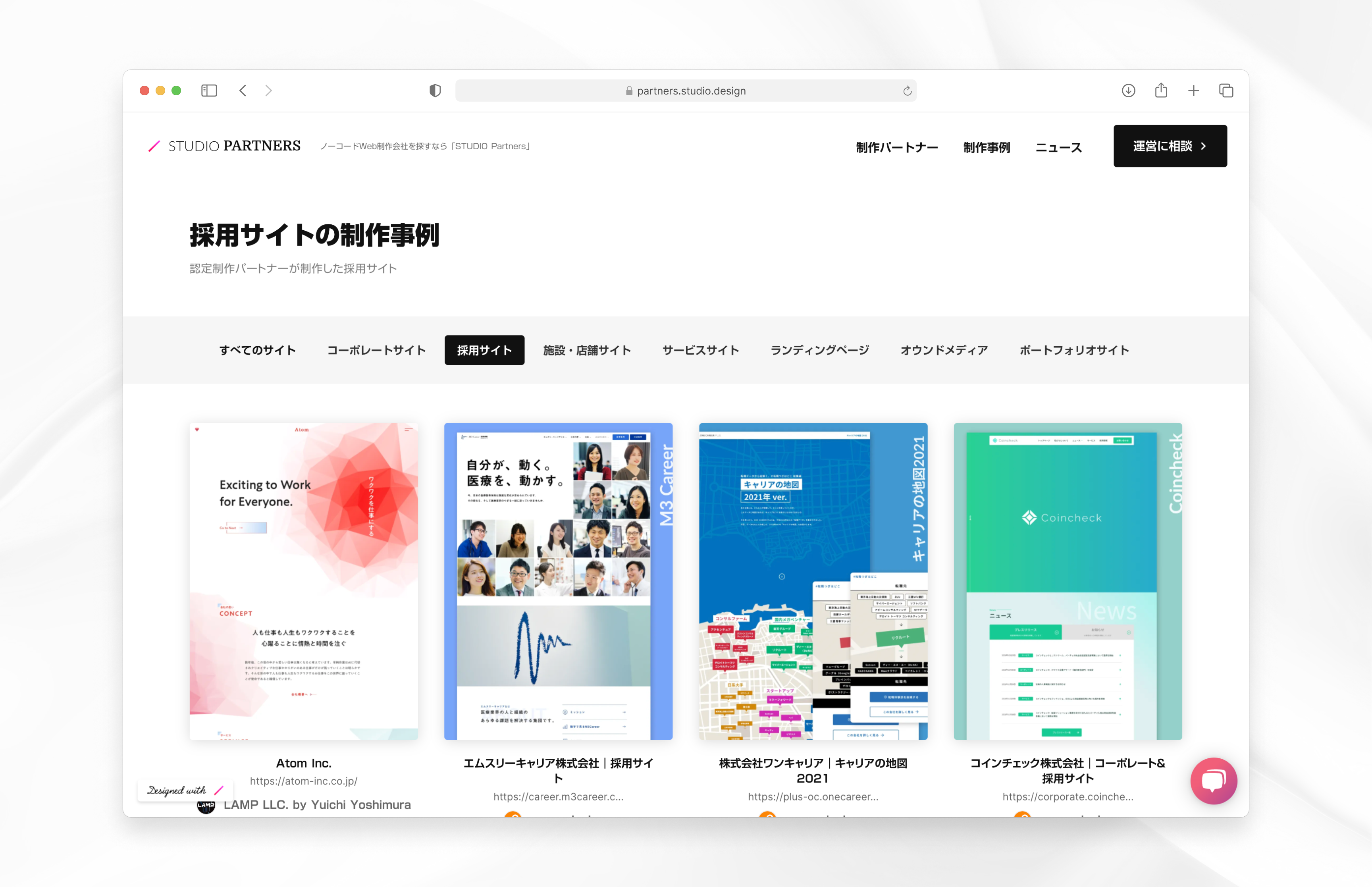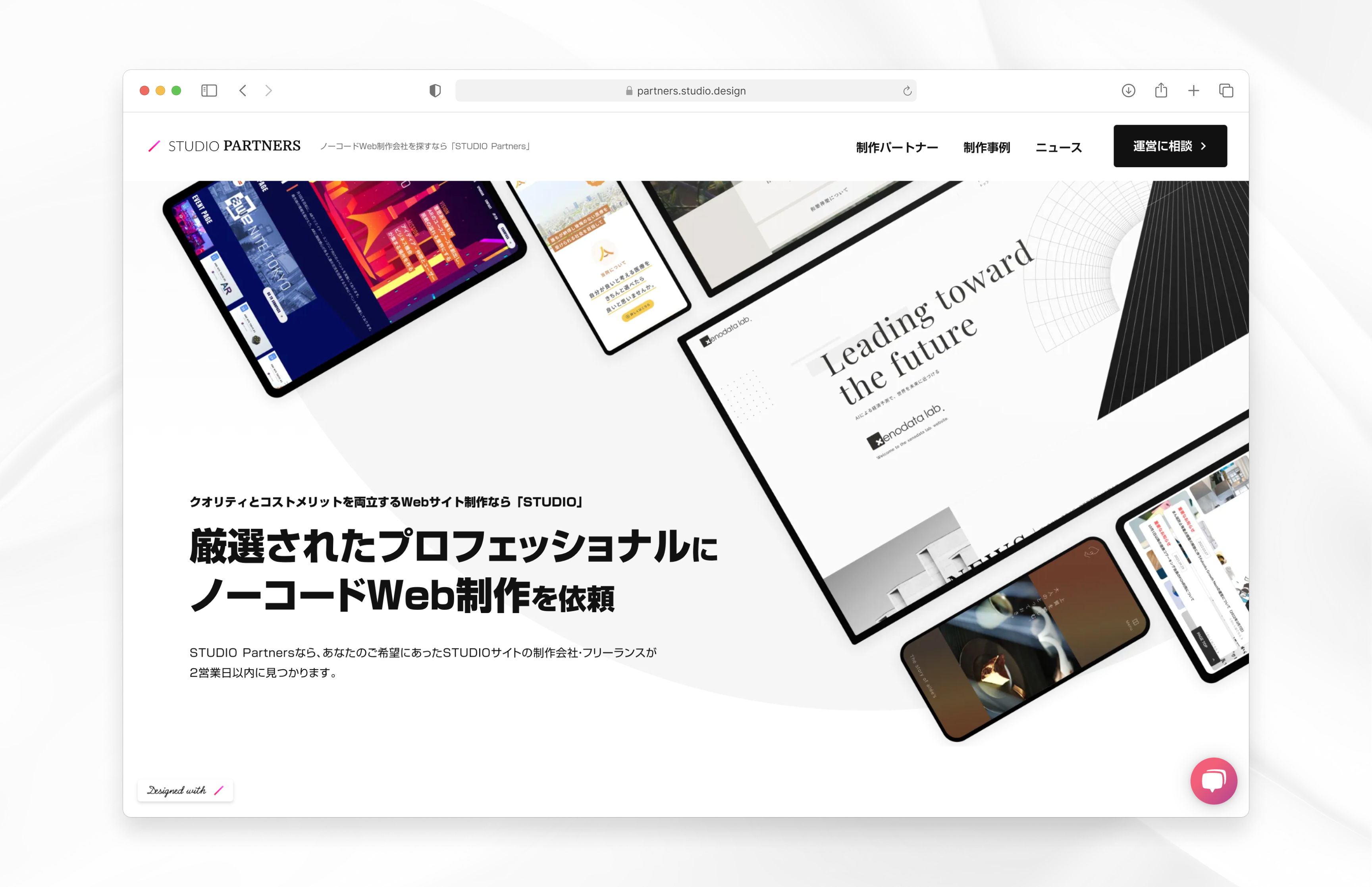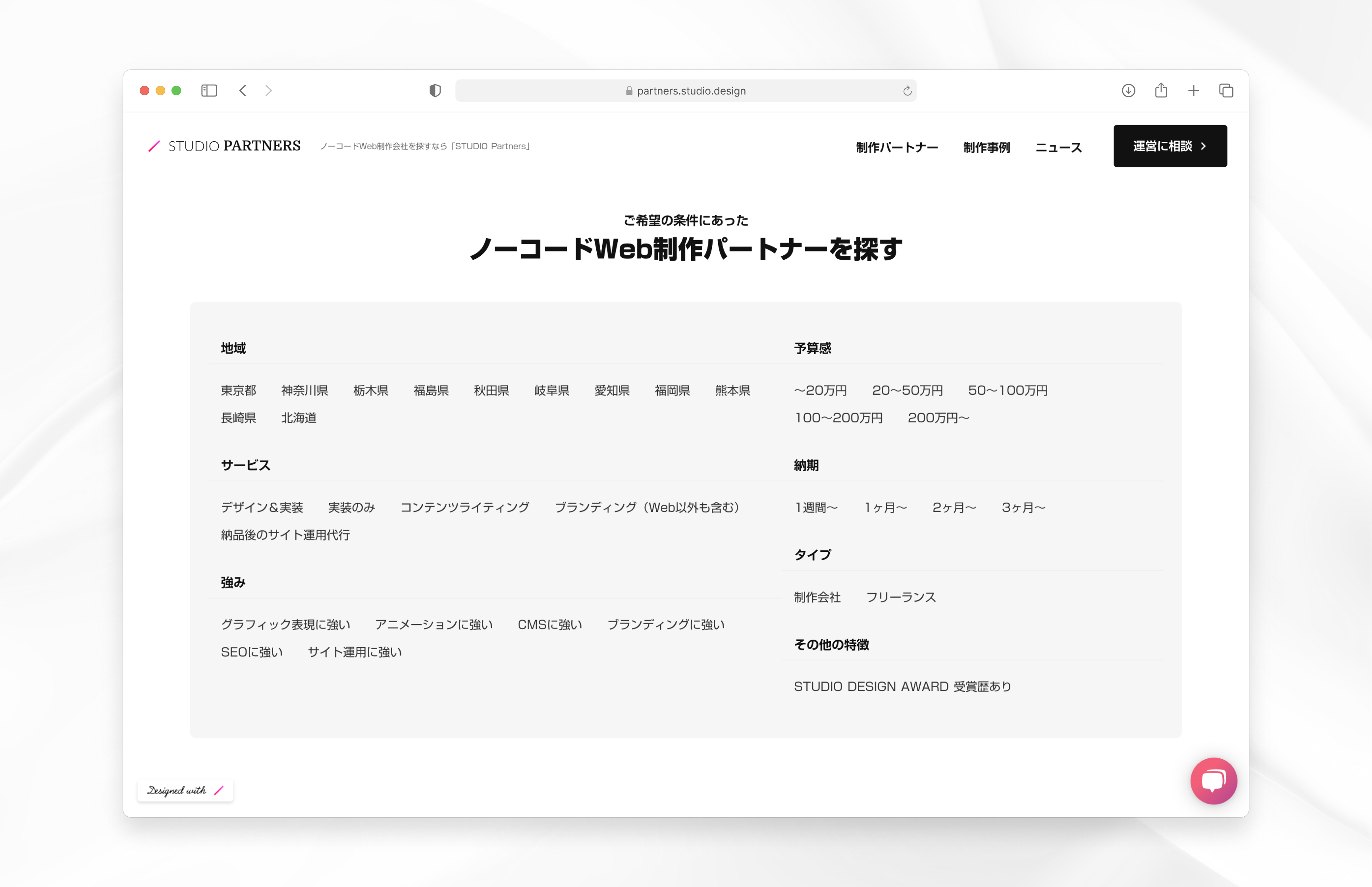 ノーコードWeb制作をご検討の企業さまに対して、STUDIOが自信を持ってご紹介できる制作パートナーのみを厳選してご紹介します。