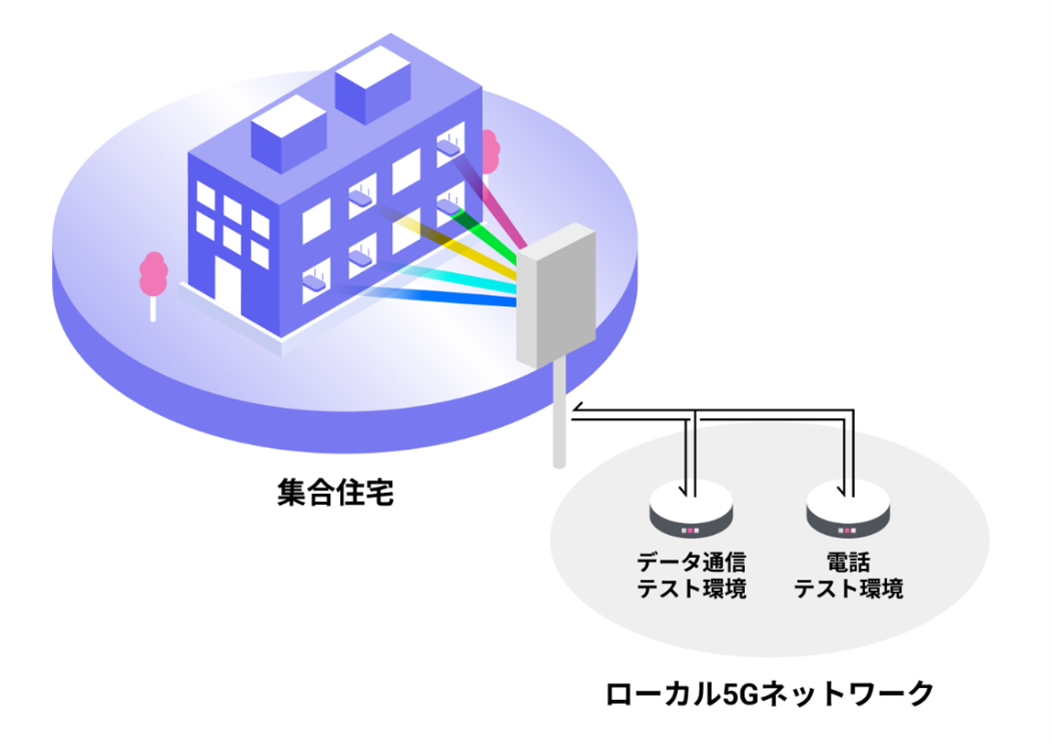・ 実際の集合住宅にて、屋外に設置した「Massive MIMO」を利用したローカル5G基地局の電波カバー範囲や建物内への電波伝搬特性の検証