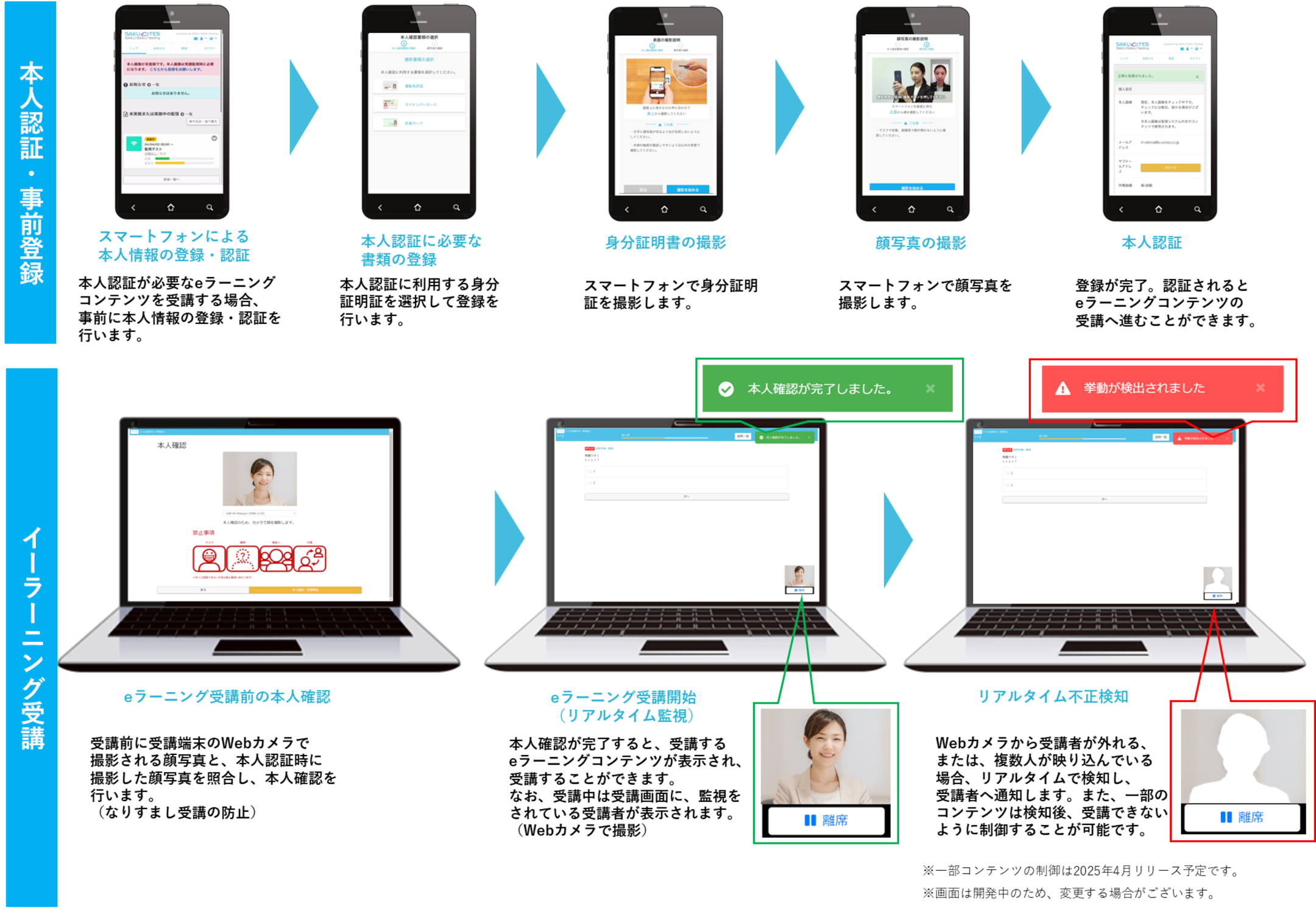 概要 :eラーニング受講時、AIによる不正受講の抑止・防止を行うサービス。