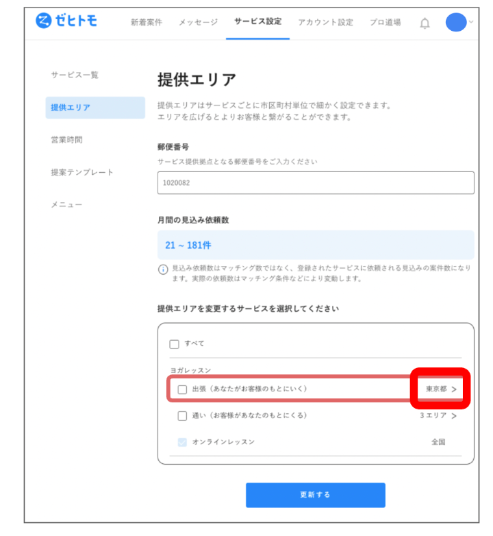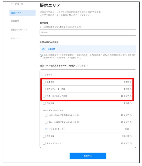 カテゴリごとに提供エリアの設定が可能に。事業者と依頼者、双方のニーズに合ったマッチングを実現