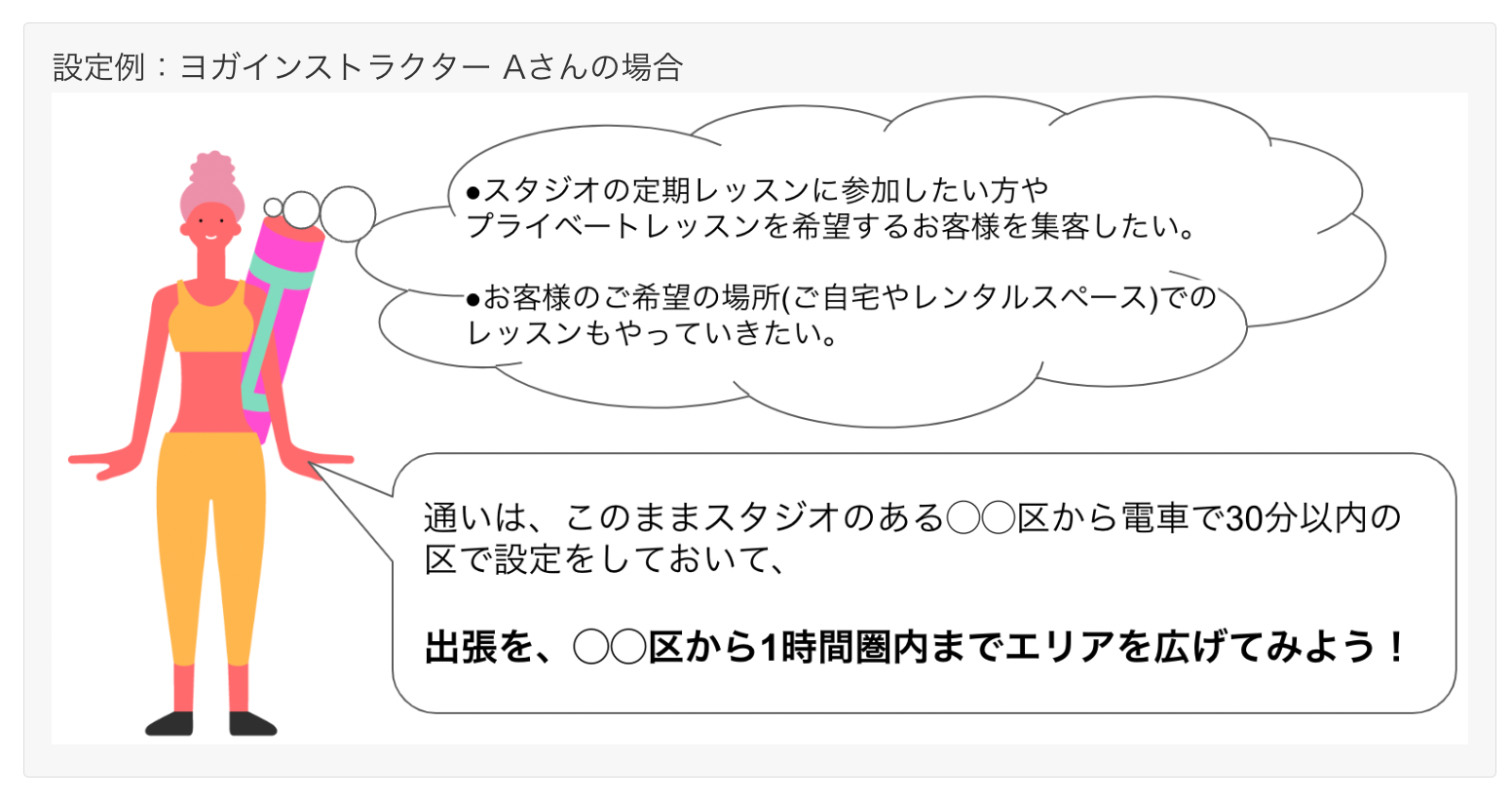 ・80カテゴリにおいては「通い」「出張」「オンライン」の3パターンから選択可能な上、それぞれでエリア設定が可能