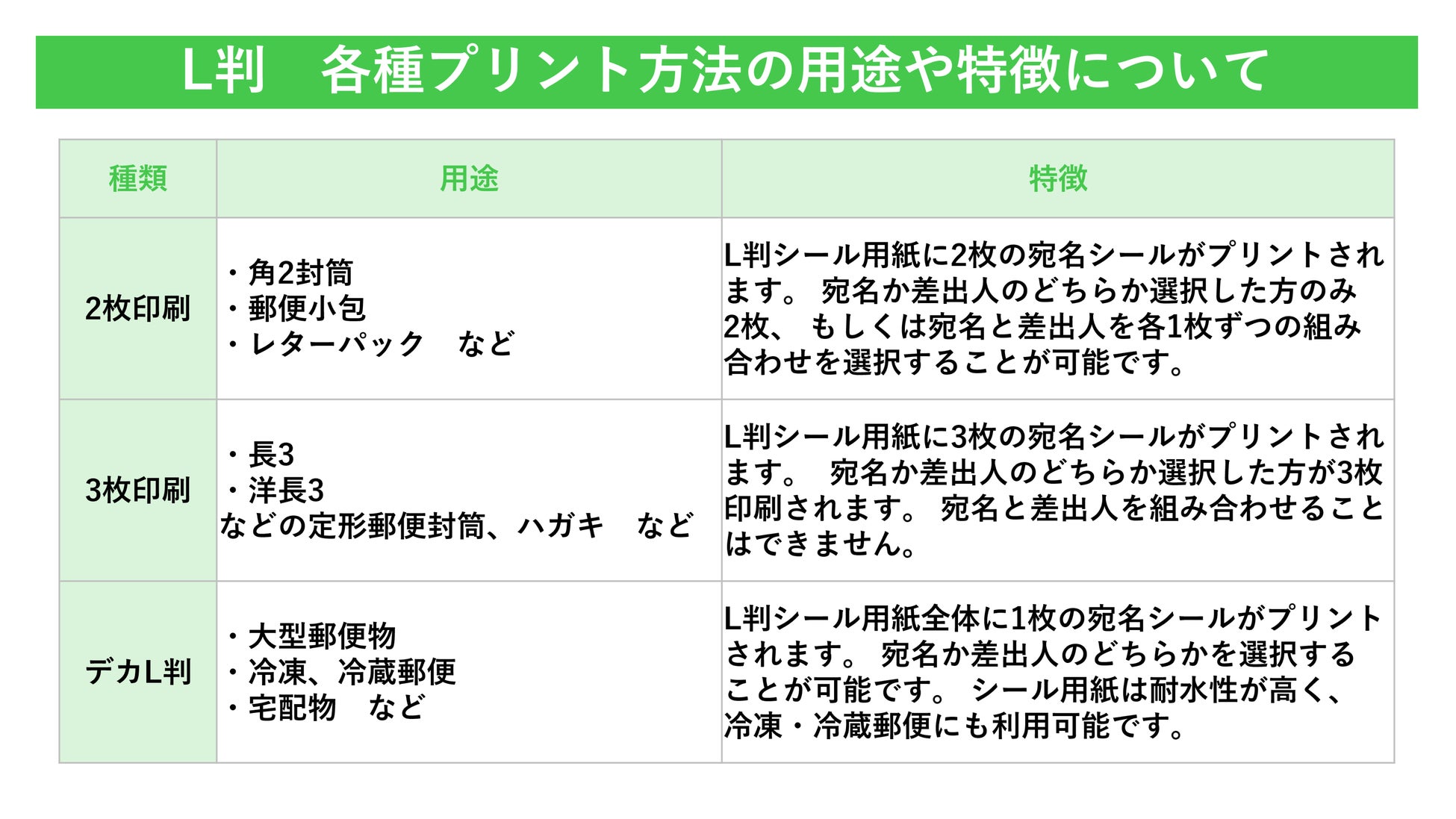 L判シール(127mm×89mm)では、3種類のプリント方法から選択可能です。1枚300円です。