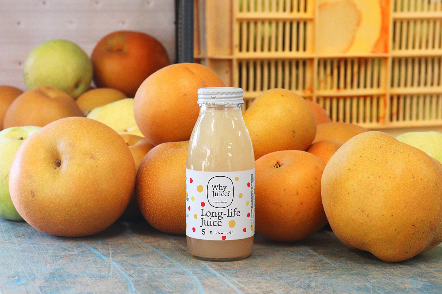 味は美味しいのに見た目や大きさの不揃いなどの理由から規格外となる梨、それらの梨に行き場を与え、形を変えて新たな価値のある商品としてお客様の手に渡る、そんなWhy Juice?の取り組みに共感いただき、このジュースが誕生しました。