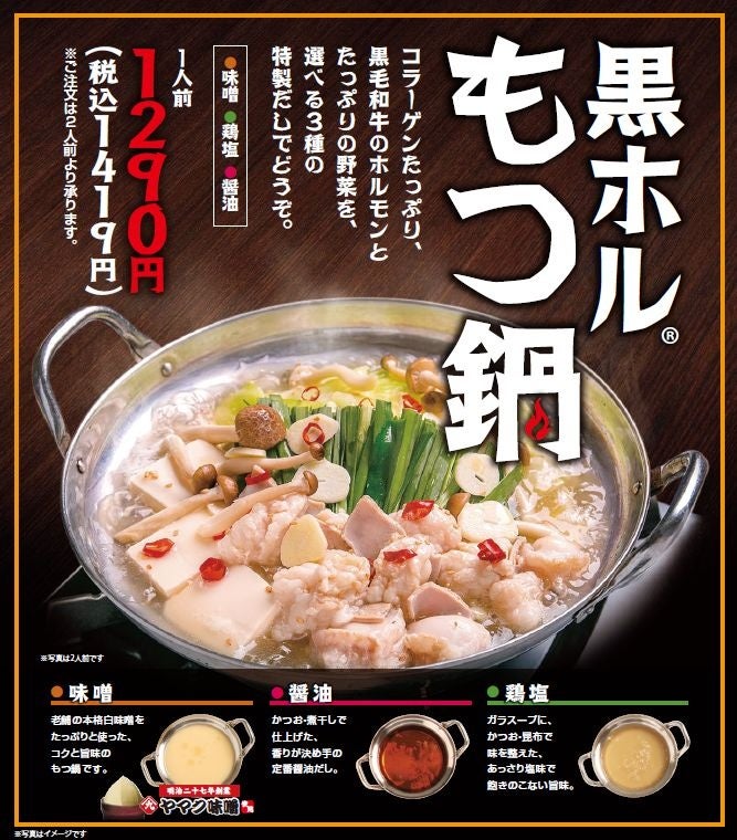 冬の定番『黒ホルもつ鍋』の味をベースに、20周年バージョンに変新した『情熱の20種もつ鍋』。20種類のホルモンが生み出す新食感と奥行きのある味わい。口の中のおもしろさをぜひ体験してみてください。
