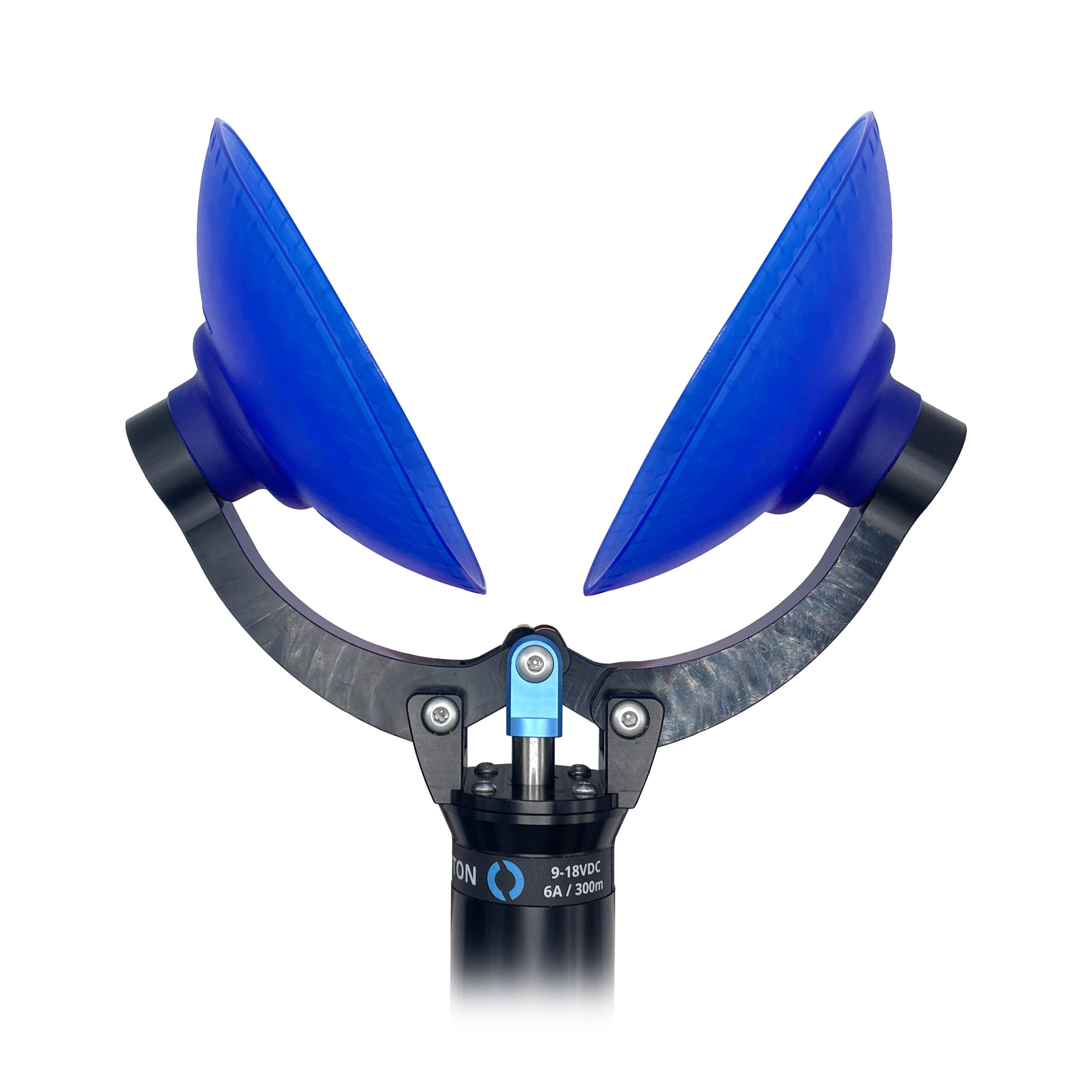 グリッパーのジョーよりも2本のアームを使用し、最大300cc(別名300mL、1.25カップ、または10液量オンス)の容量を持つラバーカップを保持できます。