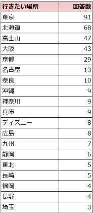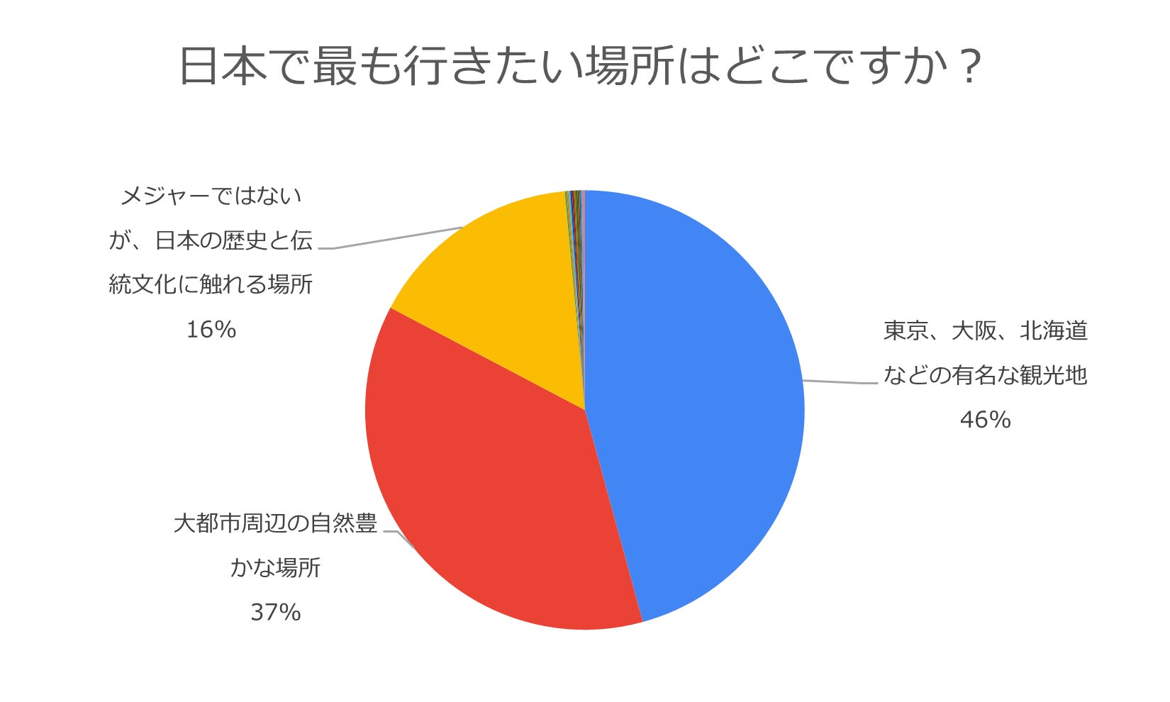 ・日本で訪れたい場所は東京や大阪、北海道などの人気観光地に行きたいユーザーが45%