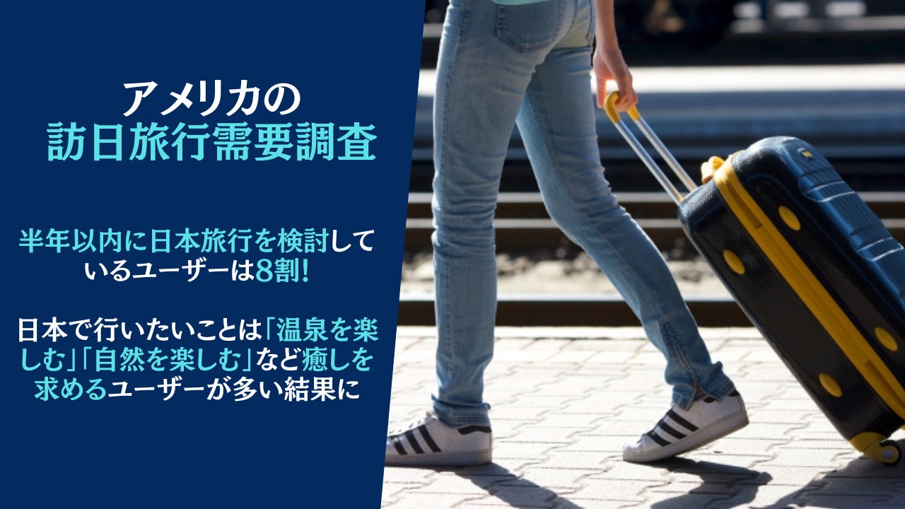 【アメリカの訪日旅行需要調査】半年以内に日本旅行を検討しているユーザーは8割!日本で行いたいことは「温泉を楽しむ」「自然を楽しむ」癒しを求めるユーザーが多い結果に