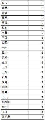 都道府県名ではなくエリア名で回答した人もおり、エリアでは九州と回答した人が7人となりました。九州や東北は各都道府県毎ではなく、エリアとして認識している人もいるようです。