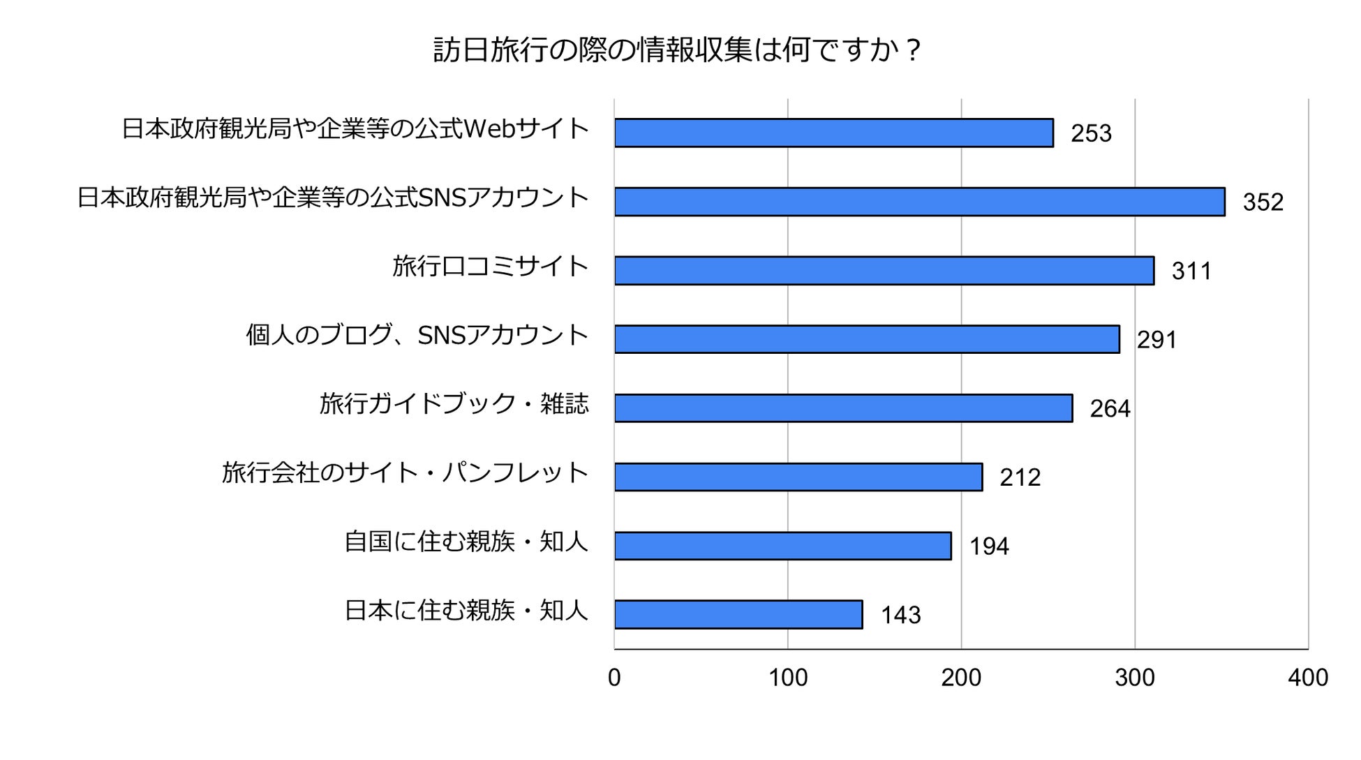 ・訪日旅行に関する情報収集は、政府や企業の公式SNSアカウントが最も多い