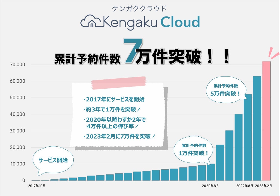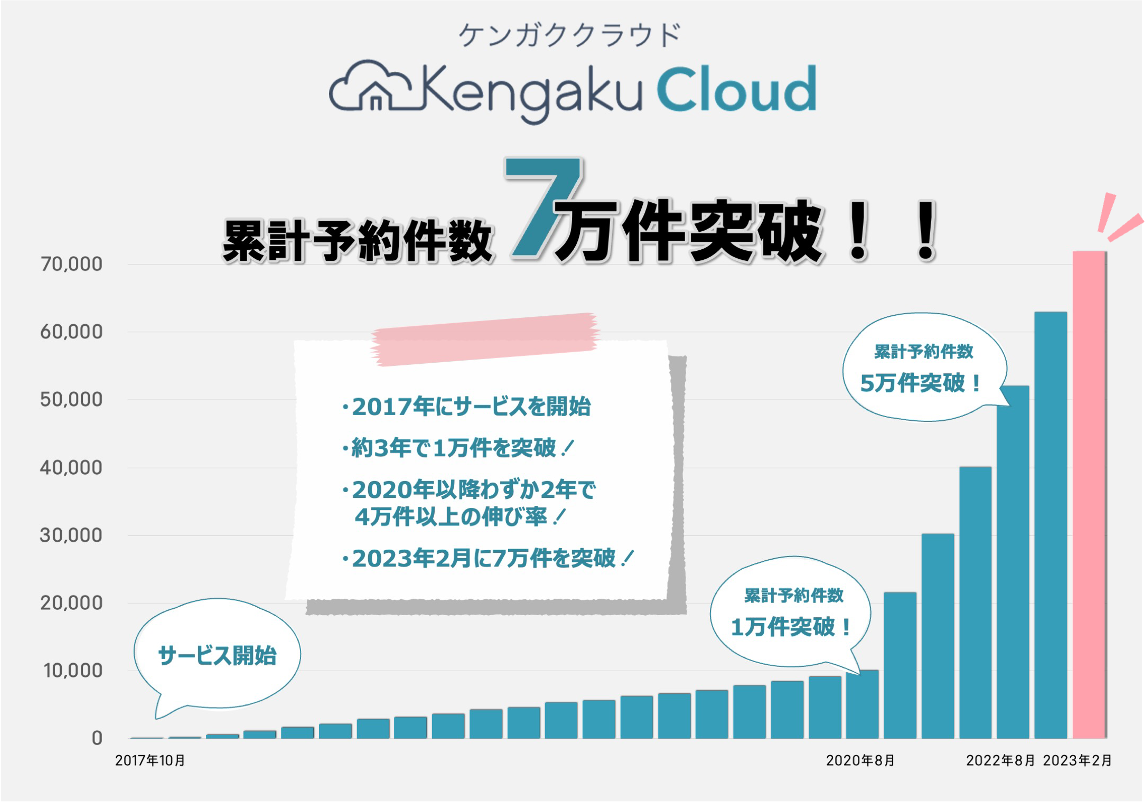 株式会社ビズ・クリエイション(本社:岡山県岡山市、代表取締役:初谷昌彦、以下、「当社」)が提供するKengakuCloud(ケンガククラウド)は、2023年2月に累計予約件数が7万件を突破しました。