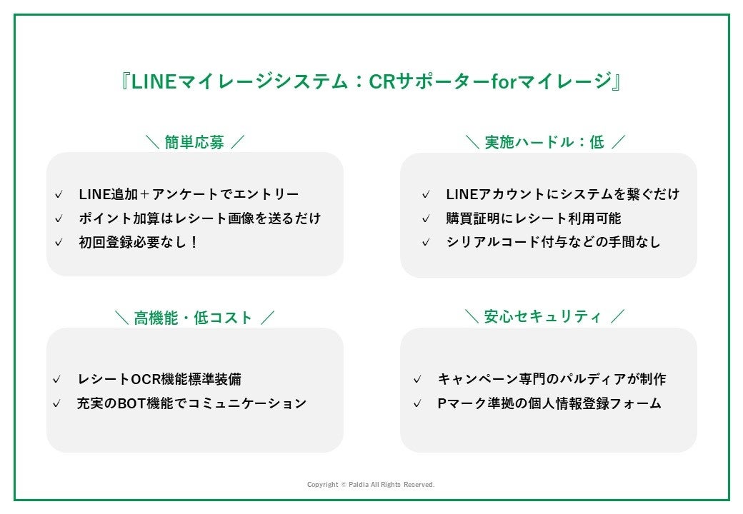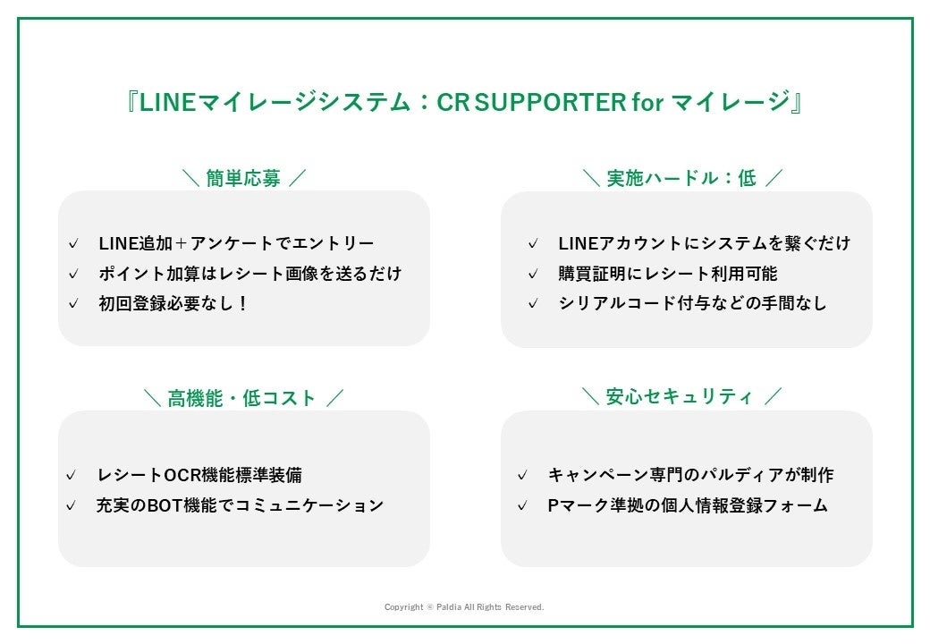 このたび、LINEを活用して実施できるキャンペーンの幅を広げ、企業と生活者の双方にとってより"わくわく"できるキャンペーンを増やすことを目的に、「CR SUPPORTER」にマイレージ機能(OCR機能付き)を追加しました。