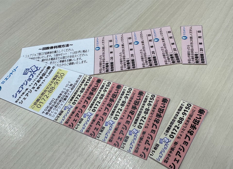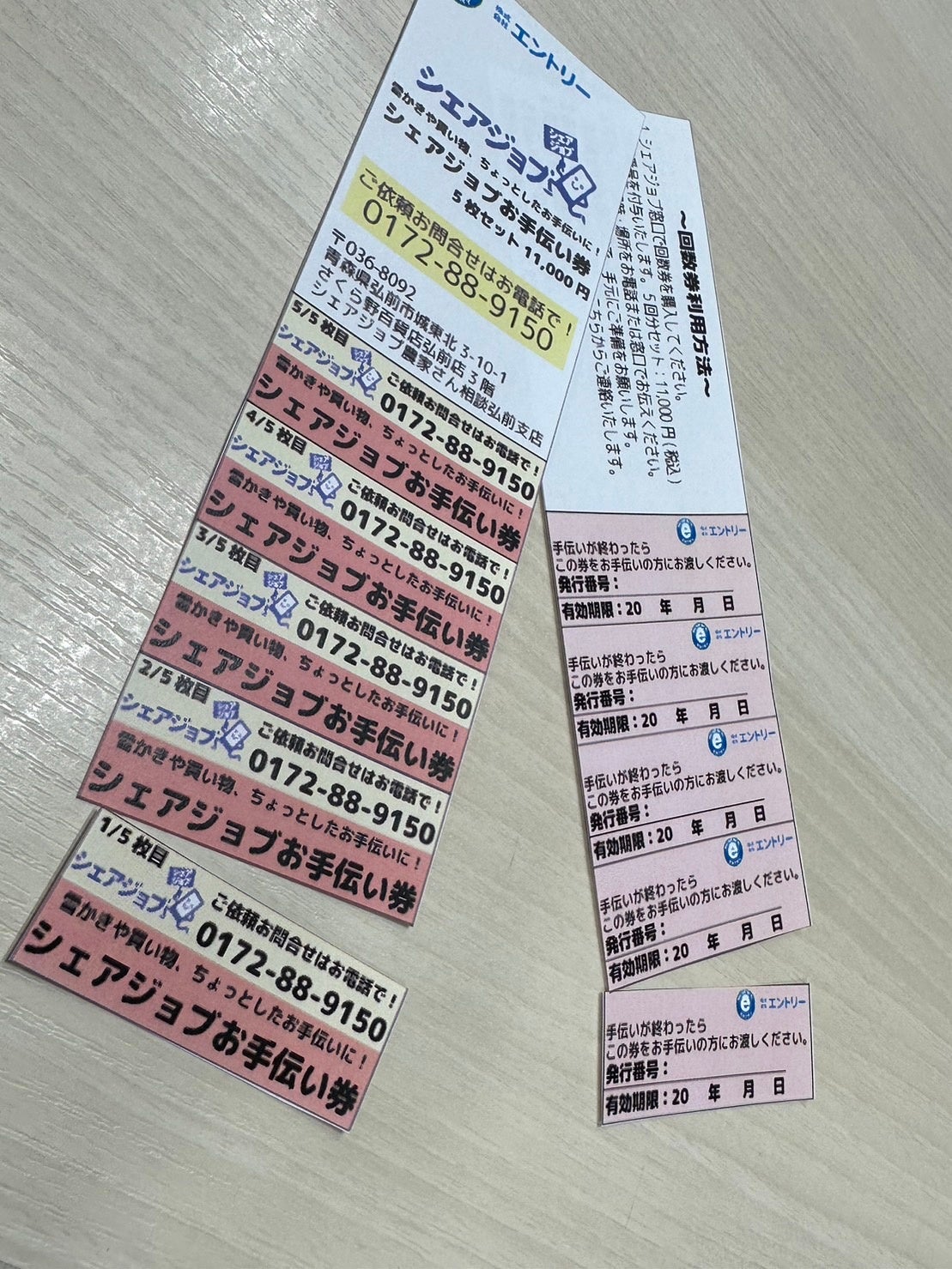 特に大きくバージョンアップしているのは依頼料の支払い方法です。「シェアジョブ農家さん相談弘前支店」の依頼者は、サイト内でワーカーを採用する際にクレジット払い、またはコンビニ払いで前払いいただいておりましたが、一人暮らしの高齢者の家の前に積雪があり身動きが取れなくなった状況にも関わらず、クレジットカードを持っていない依頼者がコンビニへ前払いをするのは「今欲しい」というニーズに反していることが課題となっていました。そこで、2022年12月から「シェアジョブお手伝い券」の導入を開始する運びとなりました。