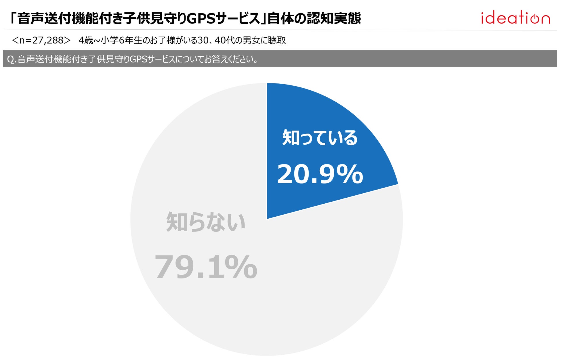 ・音声送付機能付き子供見守りGPSサービスの認知度は20.9%である。