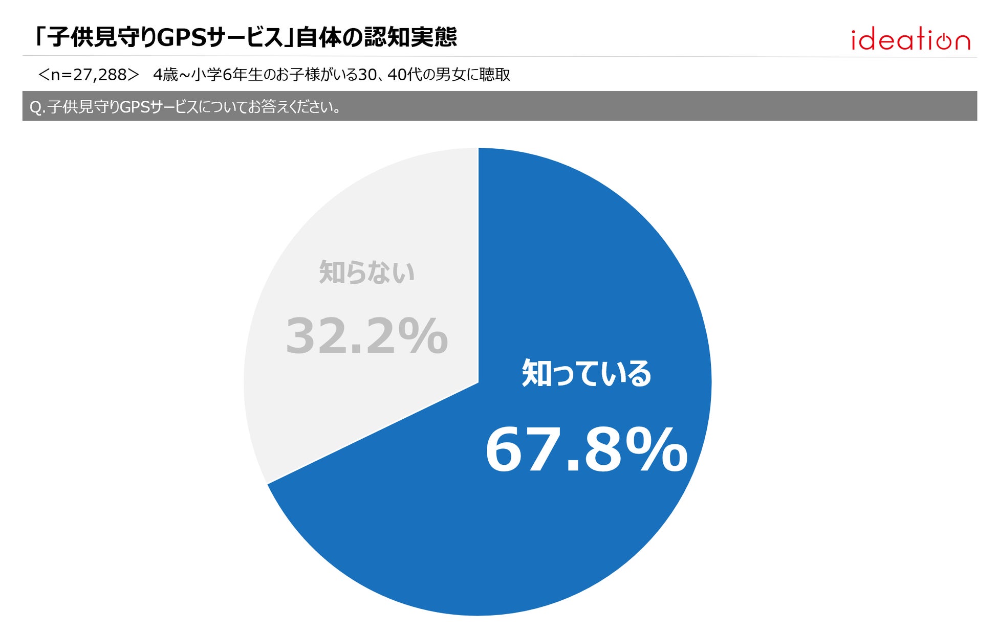 子供見守りGPSサービス自体の認知度を見ると「知っている」が前回調査結果の67.7%を上回る67.8%となった。認知度はほぼ横ばいという結果となった。