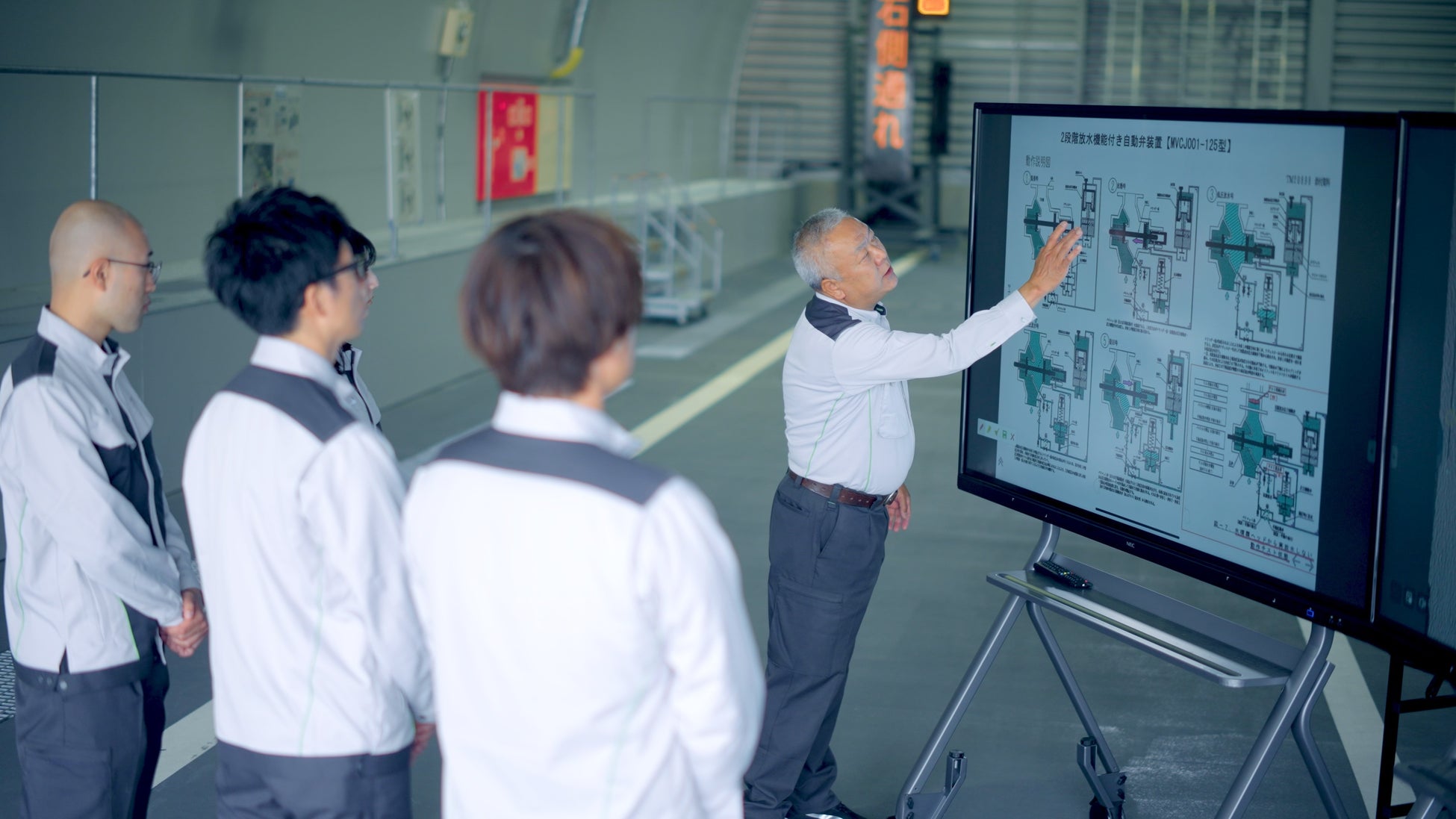 また、トンネル非常用設備の自動弁の動作原理や、設備内を通過する水の流れの説明においても、実機のカットモデルやパネルイラストを用いて行っても、研修生が構造や動作原理についてイメージすることが難しく、理解度に差異が生ずることや、講師による説明も多少異なることから研修生全員に同じ情報を提供できていないことが大きな課題でした。