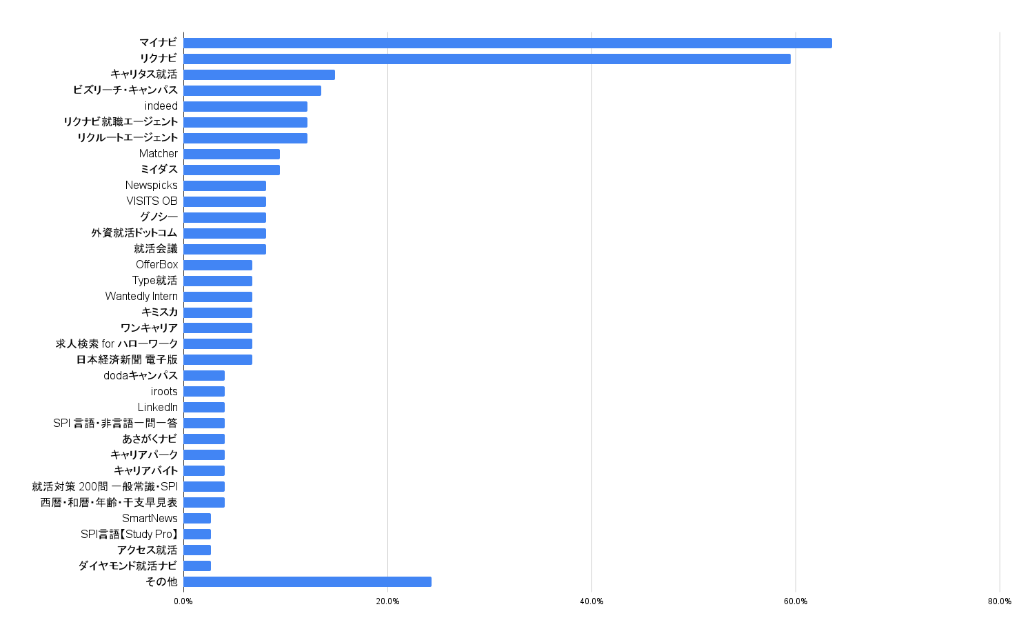 他を見ても、全体的に就活サイトのアプリ版の利用が多いことがわかります。