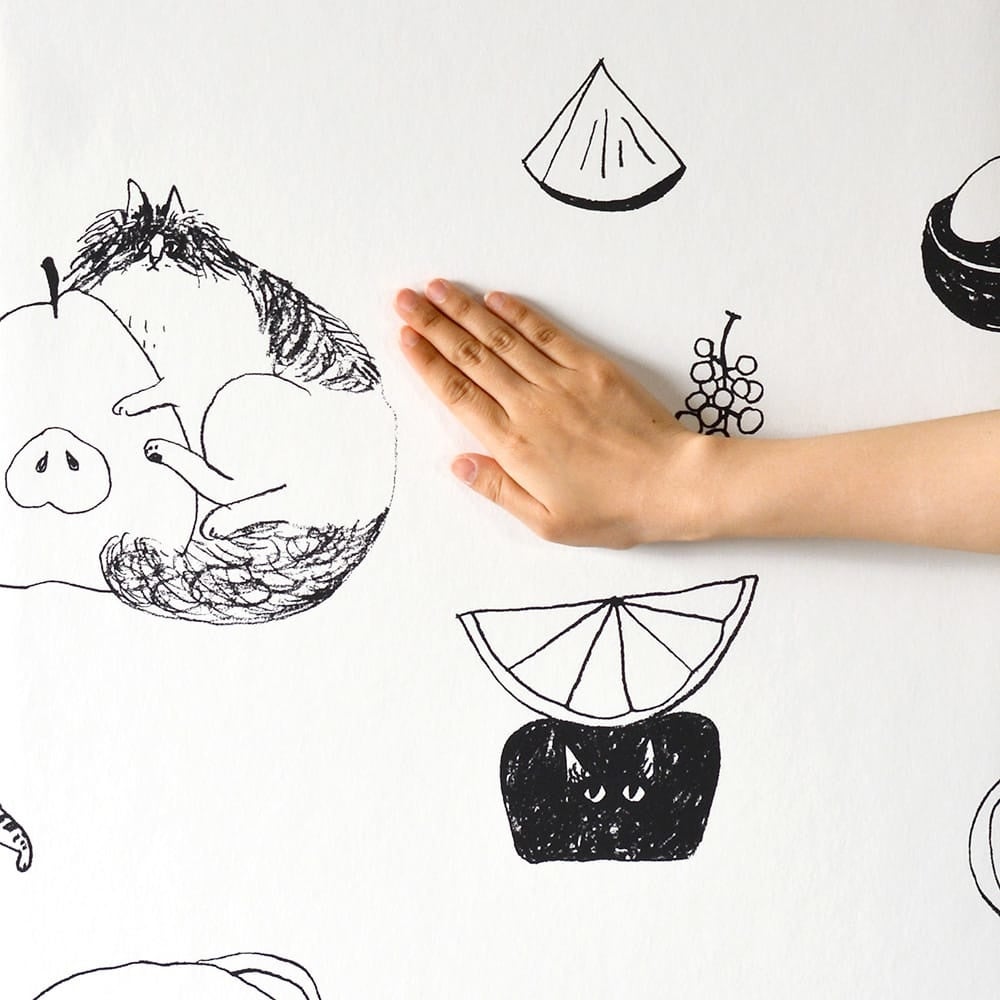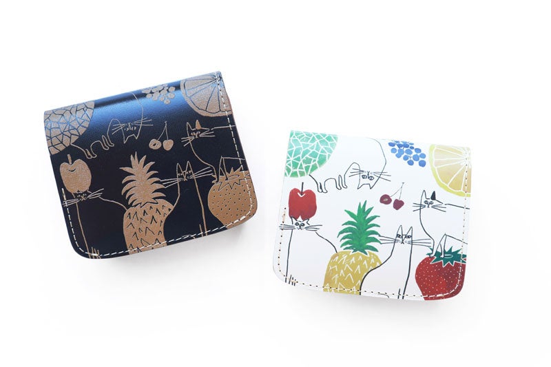 ●小さい財布 小さいふ。アートシリーズ コンチャ YOSHIDAKE 「猫と果実」ブラック/ホワイト