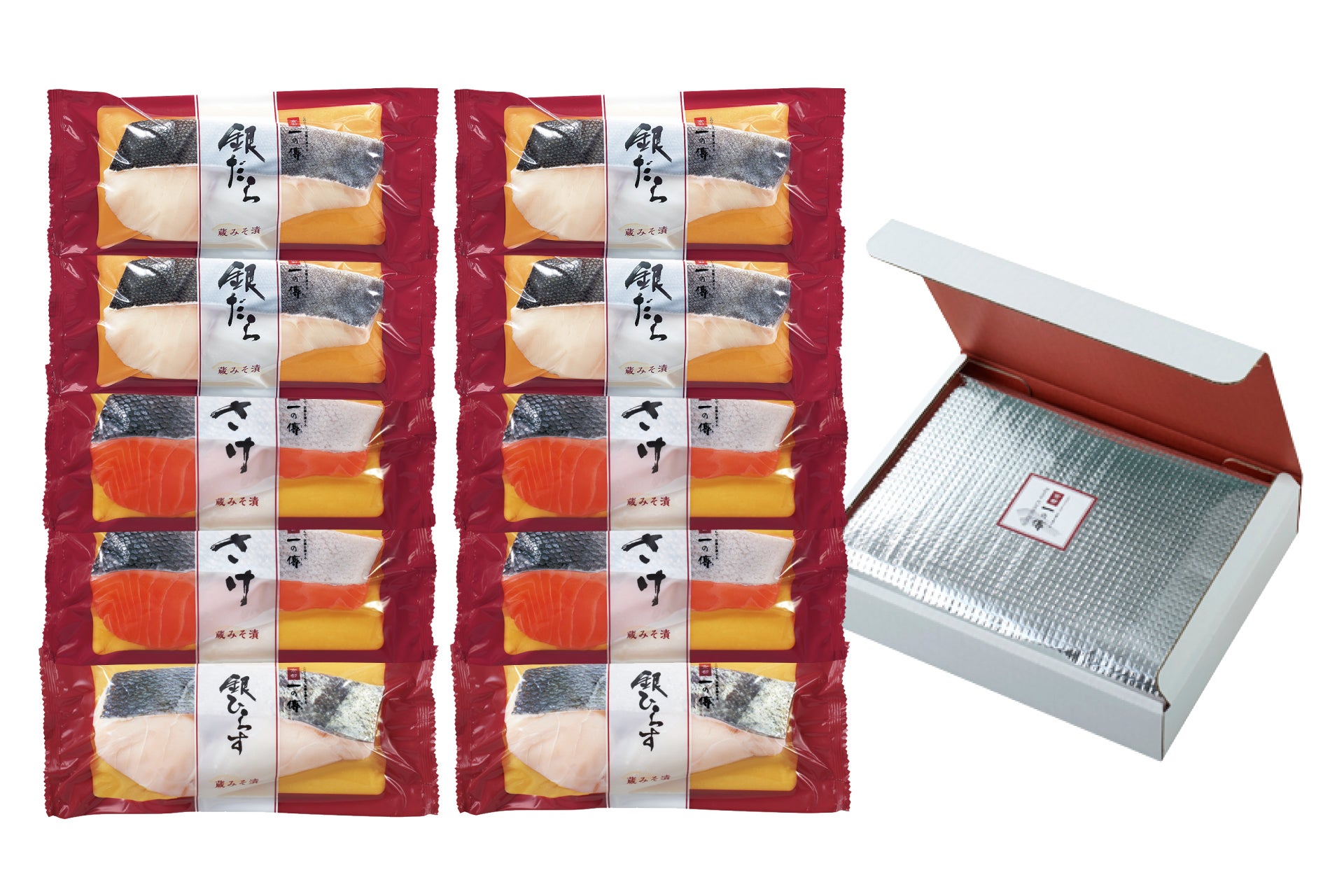 内容 :銀だら 蔵みそ漬:4切 / さけ 蔵みそ漬:4切 / 銀ひらす 蔵みそ漬:2切 計10切