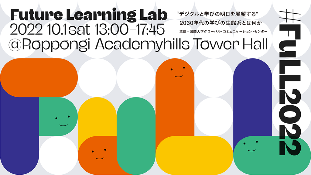 これらの研究成果をさらに発展させるべく、2022年10月1日、国際大学GLOCOMは、新たな研究体制 FuLL(Future Learning Lab)を設立し“デジタルと学びの明日を展望する” 研究活動をスタートします。そのキックオフを兼ねて、これまでのGLOCOMにおける30年の教育情報化研究を振り返りつつ、学びに関わるステークホルダーの皆さまとともに、テクノロジーと学びの新しいありかたをアイデアとして持ち寄り、共に展望する1日となれば幸いです。