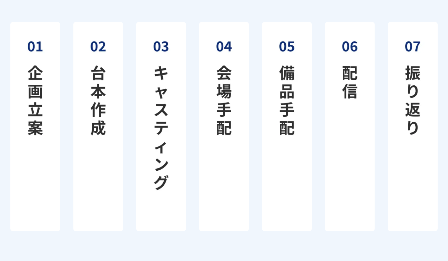 - 【企画立案から配信まで一気通貫で対応】Mofflyでは、企画・台本制作から配信オペレーションまでワンストップで提供しています。経験豊富なスタッフが臨機応変にトータルでサポートいたしますので、ライブ配信をしたい企業様でも手軽に始められるサービスです。