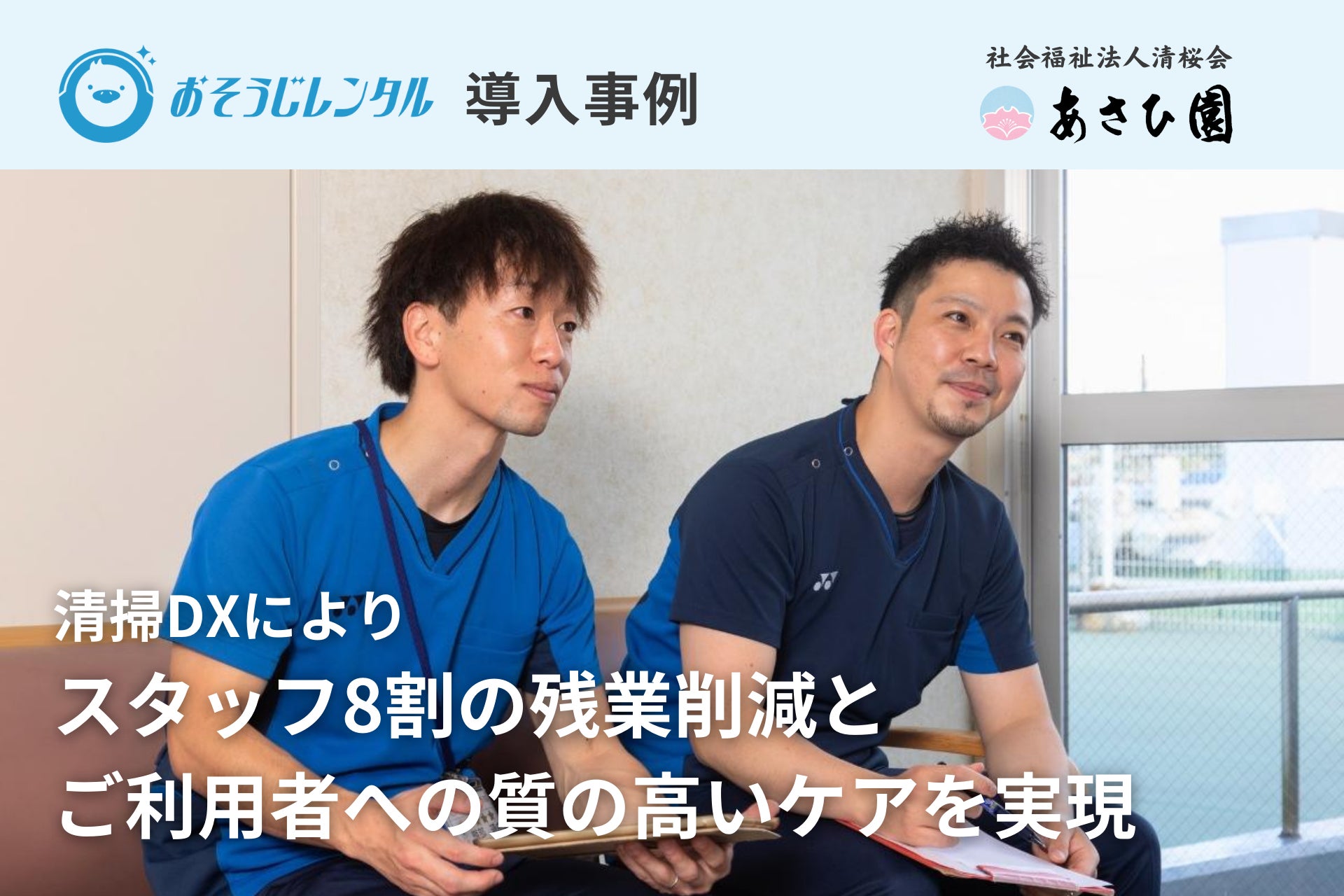 法人向けロボット掃除機レンタルサービス「おそうじレンタル」、特別養護老人ホーム・あさひ園で清掃DXによりスタッフ8割の残業削減とご利用者への質の高いケアを実現