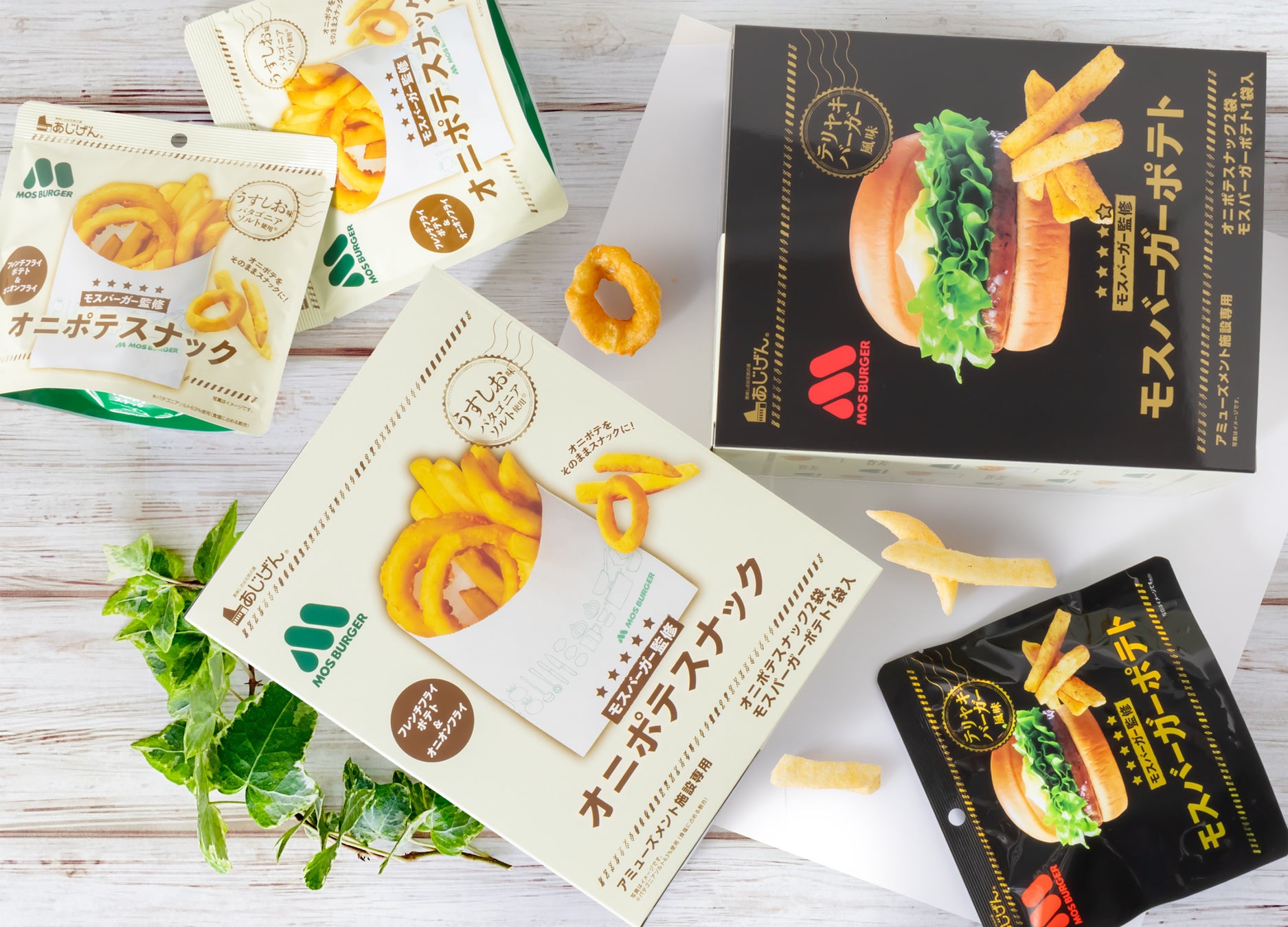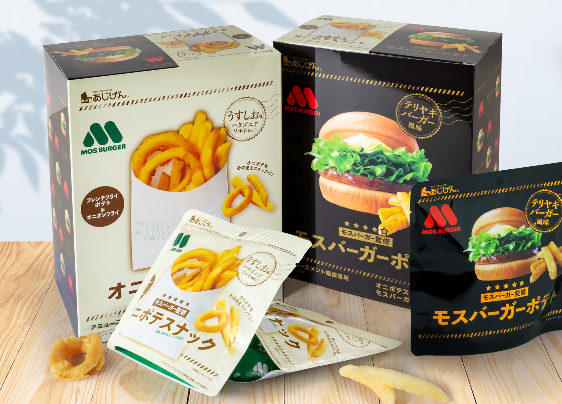本商品に封入された「オニポテスナック(うすしお味)」は、モスバーガーの人気サイドメニュー“オニポテ”の味わいをイメージして開発されたスナック菓子。