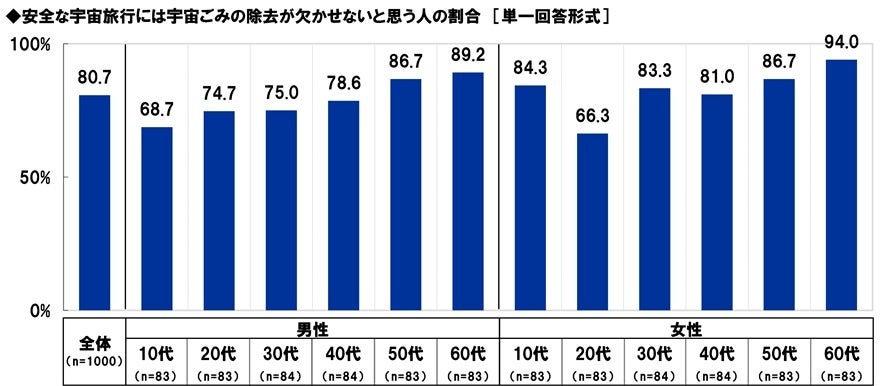 「宇宙ごみの問題も環境問題のひとつだと思う」78%、60代男性と50代女性では93%