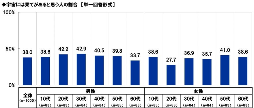 宇宙には果てがあると思うか聞いたところ、あると思う人の割合は38.0%となりました。