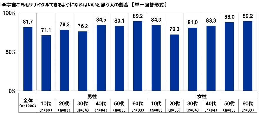 宇宙ごみもリサイクルできるようになればいいと思うか聞いたところ、そう思う人の割合は81.7%となりました。