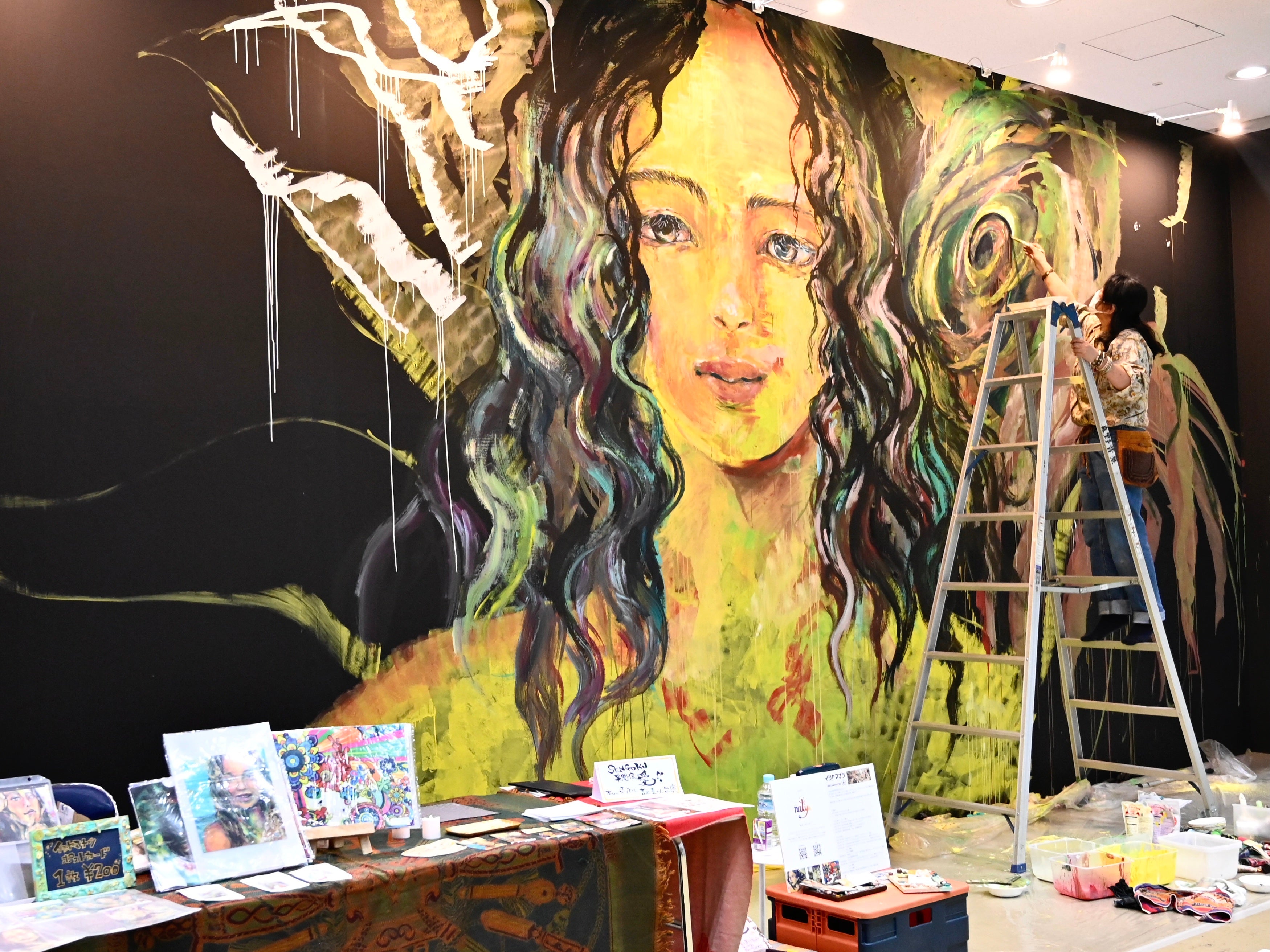 会期の2日間をかけて作品が完成するライブペイント。大きな壁に描かれていく作品を、間近でお楽しみいただけるデザフェスならではのエリアです。