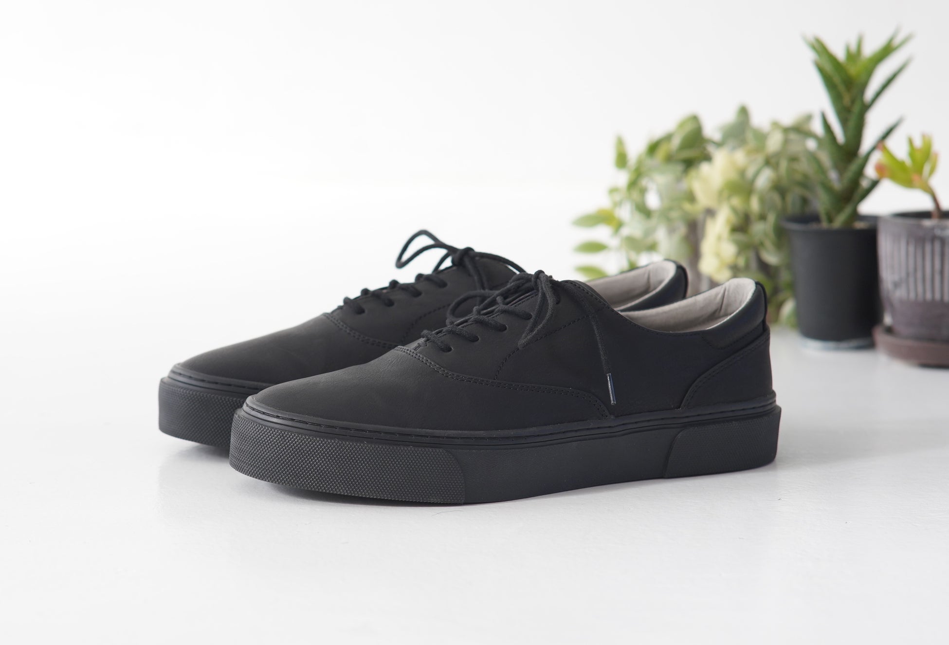 ドレスとカジュアルのバランスの取れたシルエットはオールブラックのスニーカーとして、デニムやチノパンなどの普段着とも相性良く履き回すことが容易です。