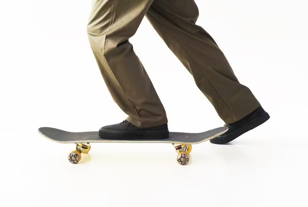 アッパーに傷がつくのでおすすめはしませんが、スケートボードシューズとして本格的に使うことも可能です。多くのスケートボードシューズで採用されるバルカナイズ製法ならではの堅牢性とグリップ力で繊細なボードコントロールを実現します。