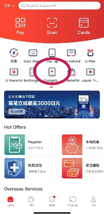 <UnionPayアプリ内での「ChargeSPOT」の使用方法>