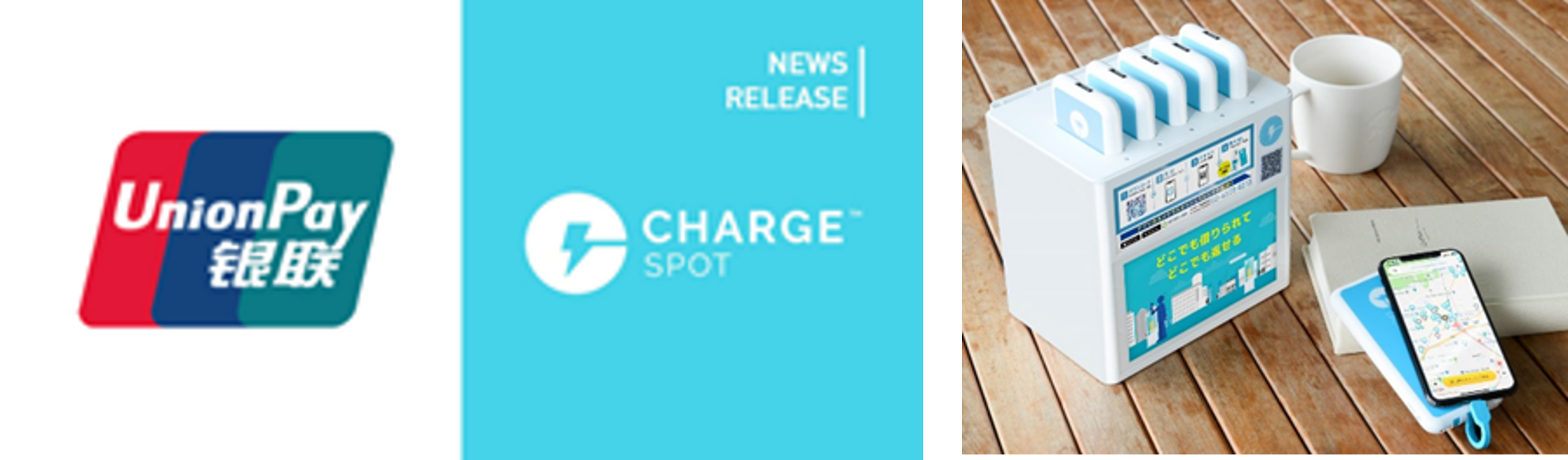 UnionPay、モバイルバッテリーシェアリング「ChargeSPOT」と提携開始 2022年1月11日(火)より、 UnionPayアプリから「ChargeSPOT」のサービス・支払いが利用可能に!