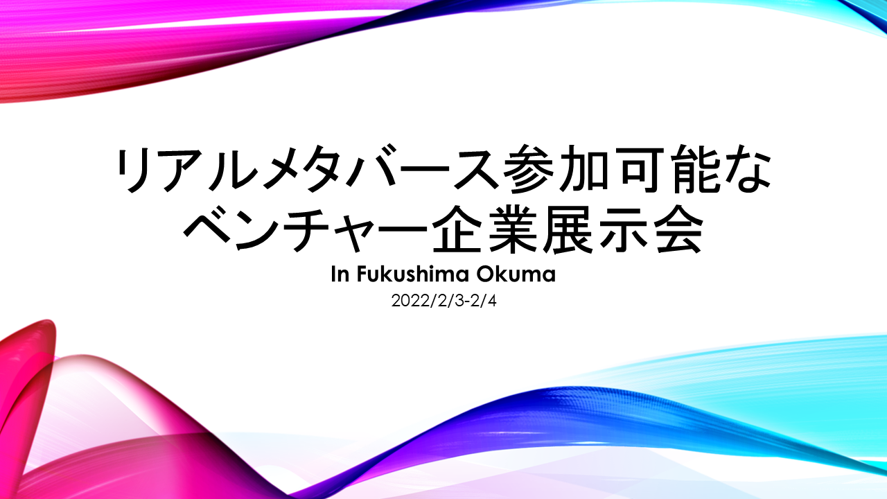 2022年2月3日、2月4日の両日において、福島県双葉郡大熊町内の本会場と東京都内のサテライト会場を結び、また各地のオフィスやご自宅からもご参加いただけるスタートアップの展示会の開催を決定しましたので、ご報告いたします。