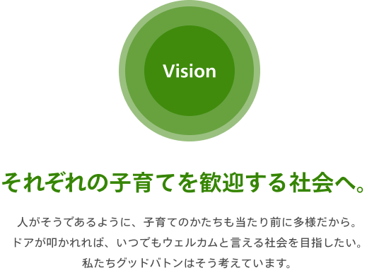 ビジョン:それぞれの子育てを歓迎する社会へ。