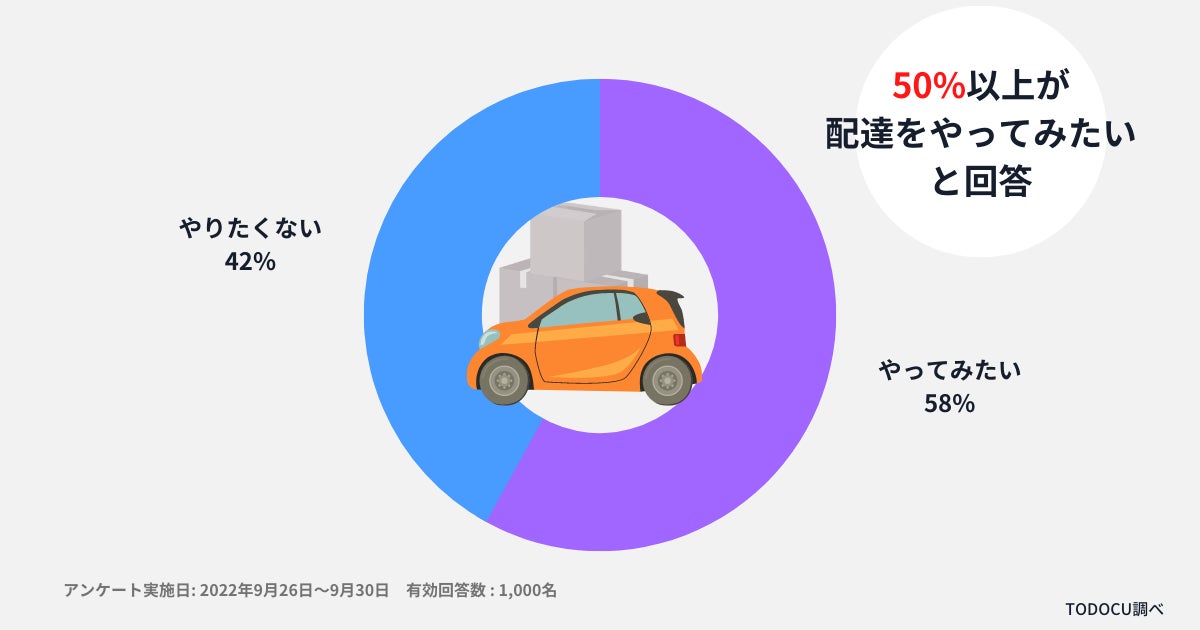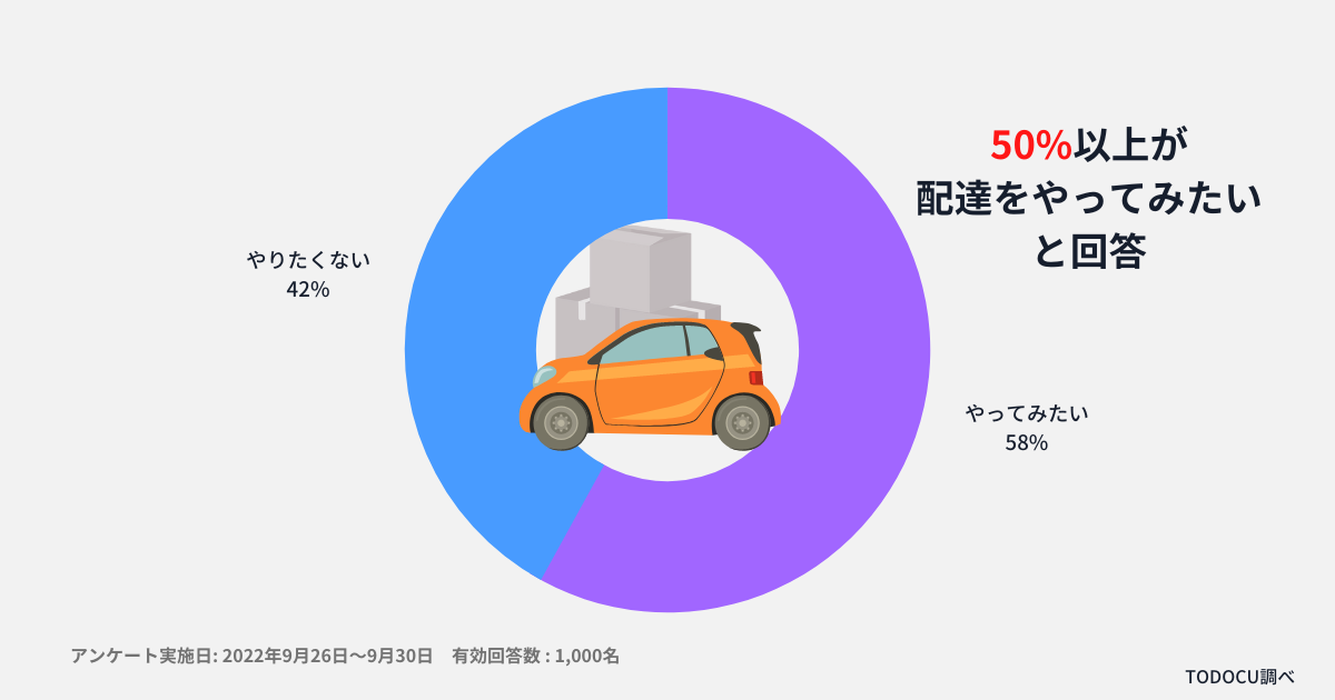 - 自宅の軽乗用車で配達ができるならやってみたいという人は58%。
