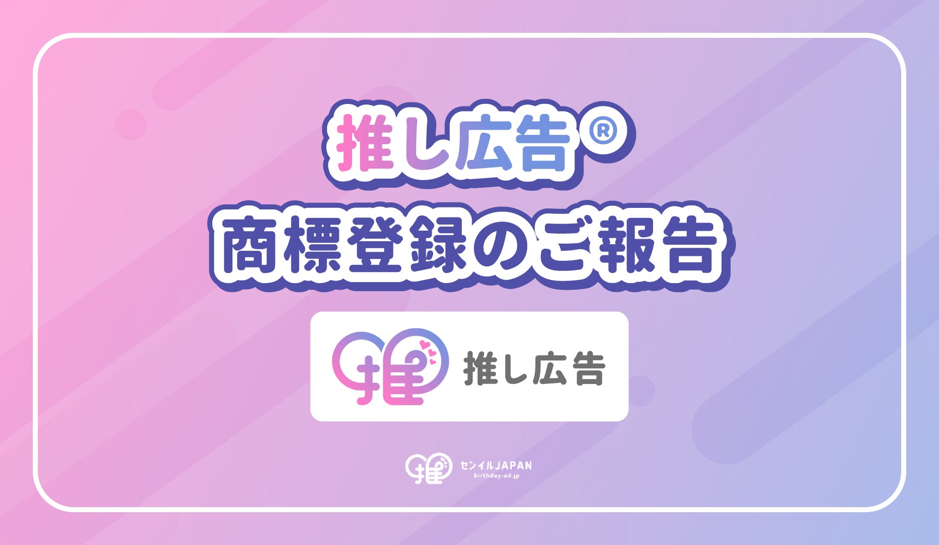 センイルJAPANが「推し広告®︎」を商標登録したことをお知らせいたします。今後も「推し広告で想いを形にする」サポートを行ってまいります。