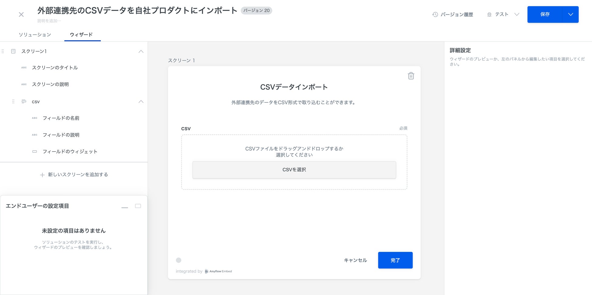 エンドユーザーは一般的なファイル操作でCSVをアップロードでき、中身を確認したうえで設定を完了します。