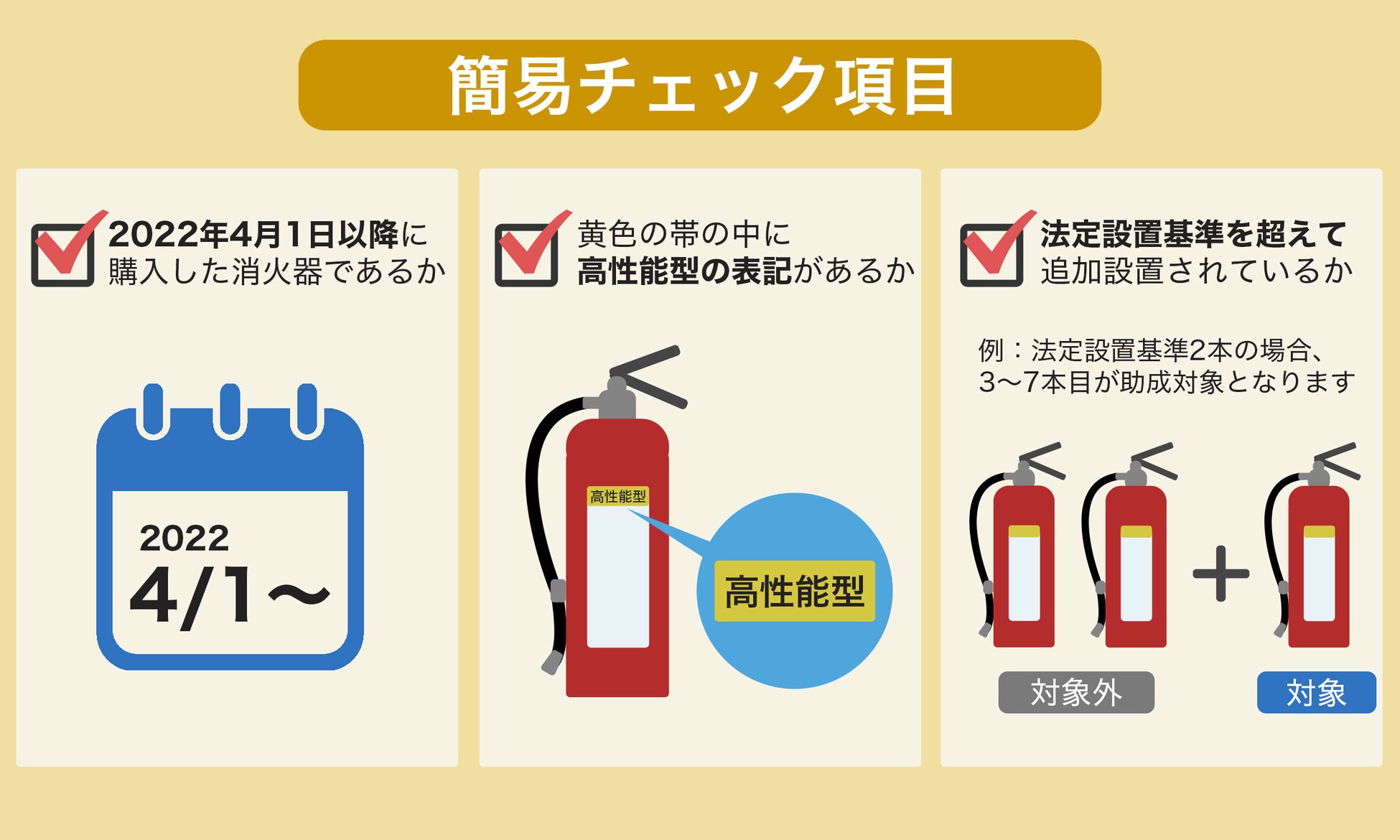 ※法定設置基準の設置義務を超えて設置する「標準的な消火器」は対象外となります。